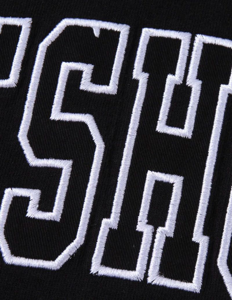 アーチのかかったロゴの刺繍が特徴的な1枚。