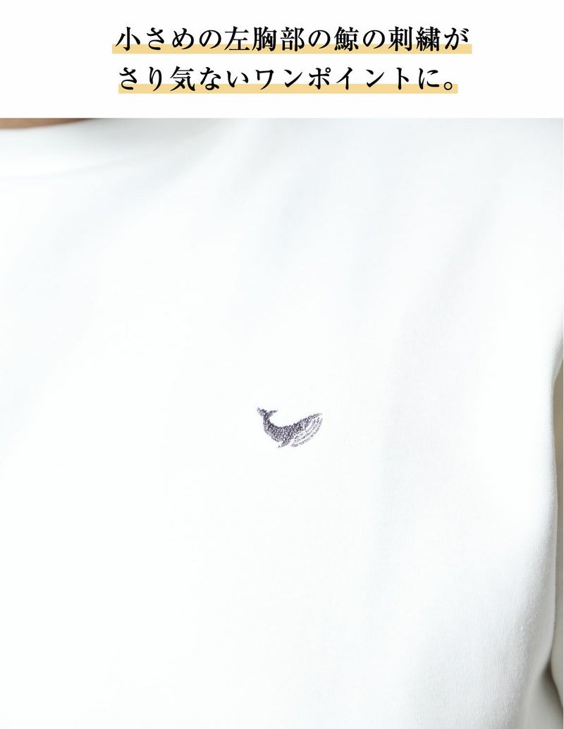 左胸部分には鯨の刺繍、右サイドにはピスネームをさり気なく施したシンプルながらこだわりのポイント。