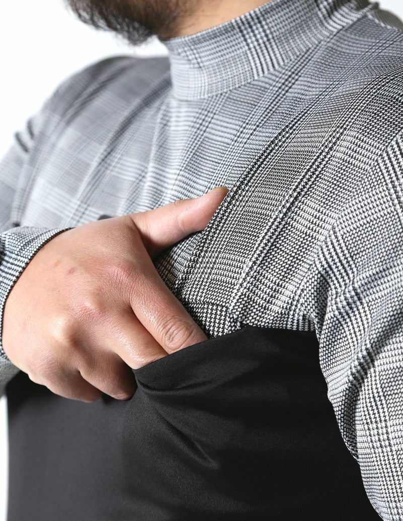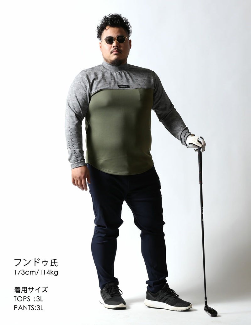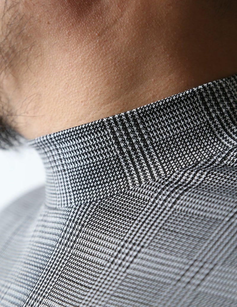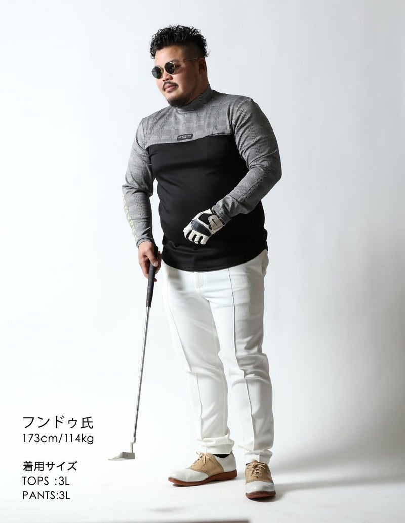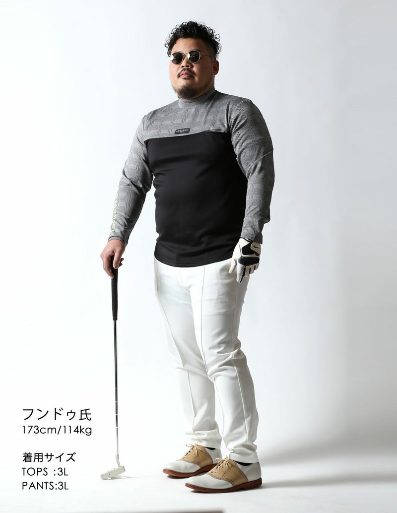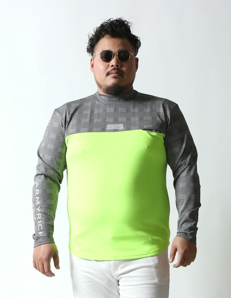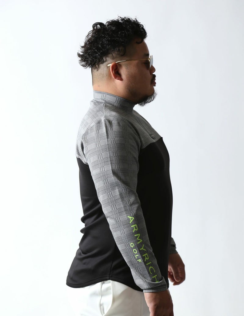 ゴルフとカジュアルを両立させたデザインのグレンチェック切替のモックネックTシャツが登場。