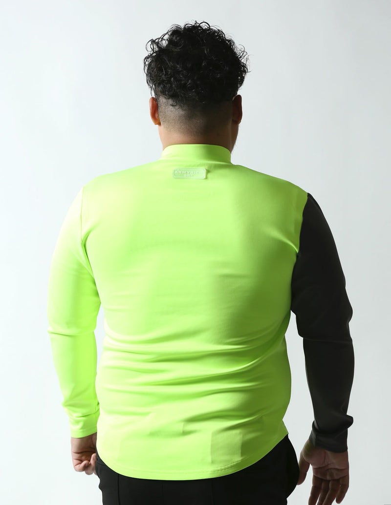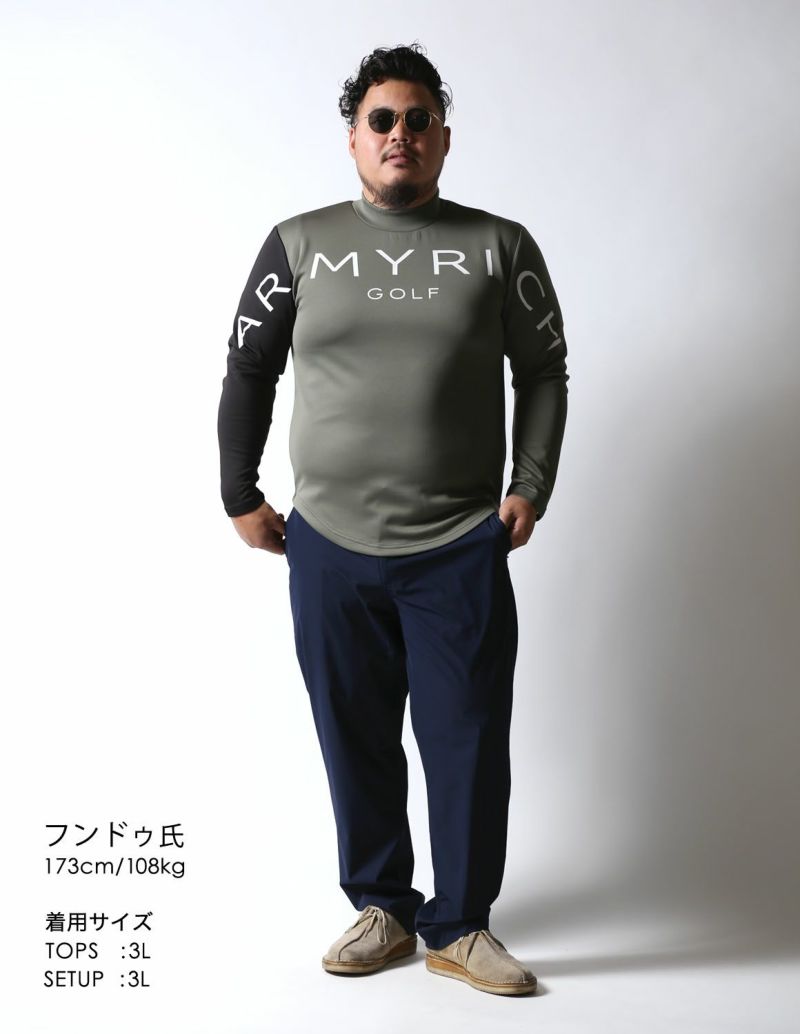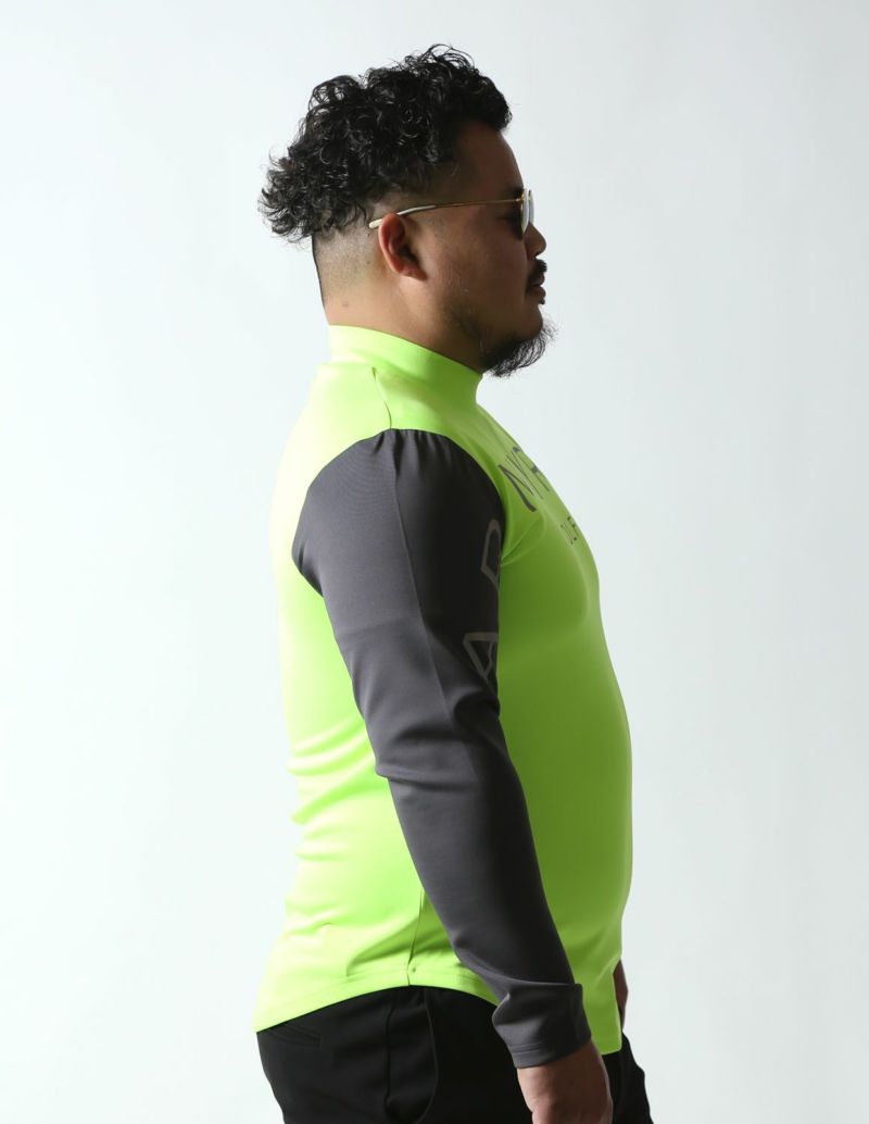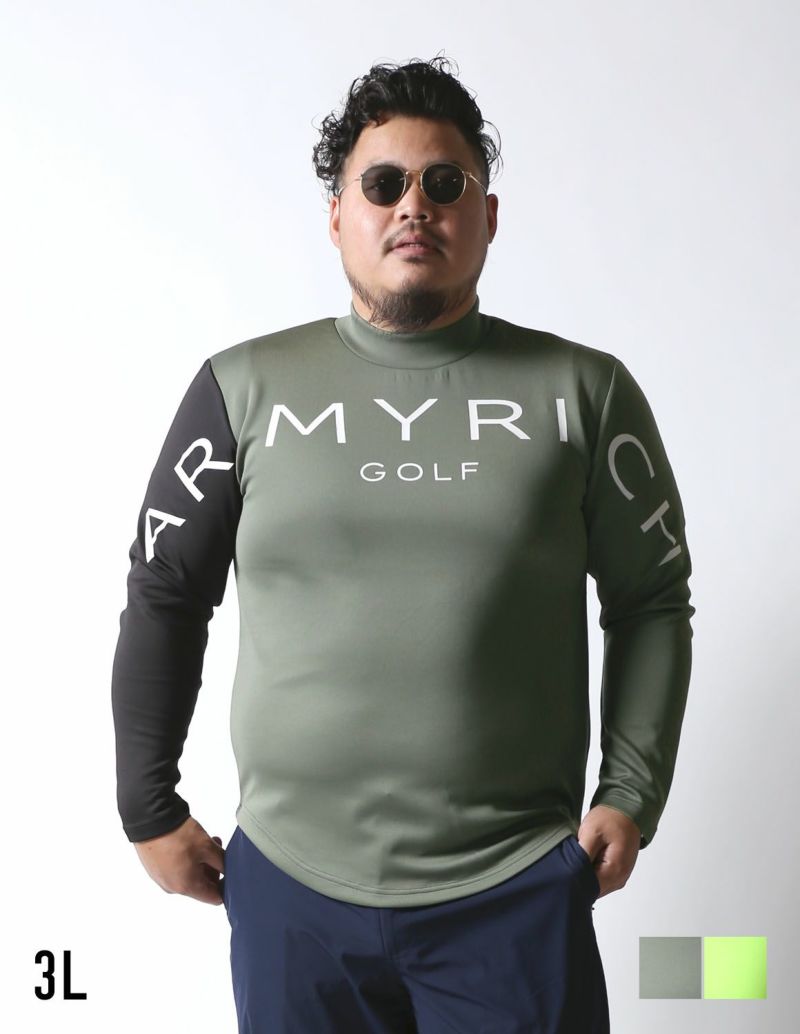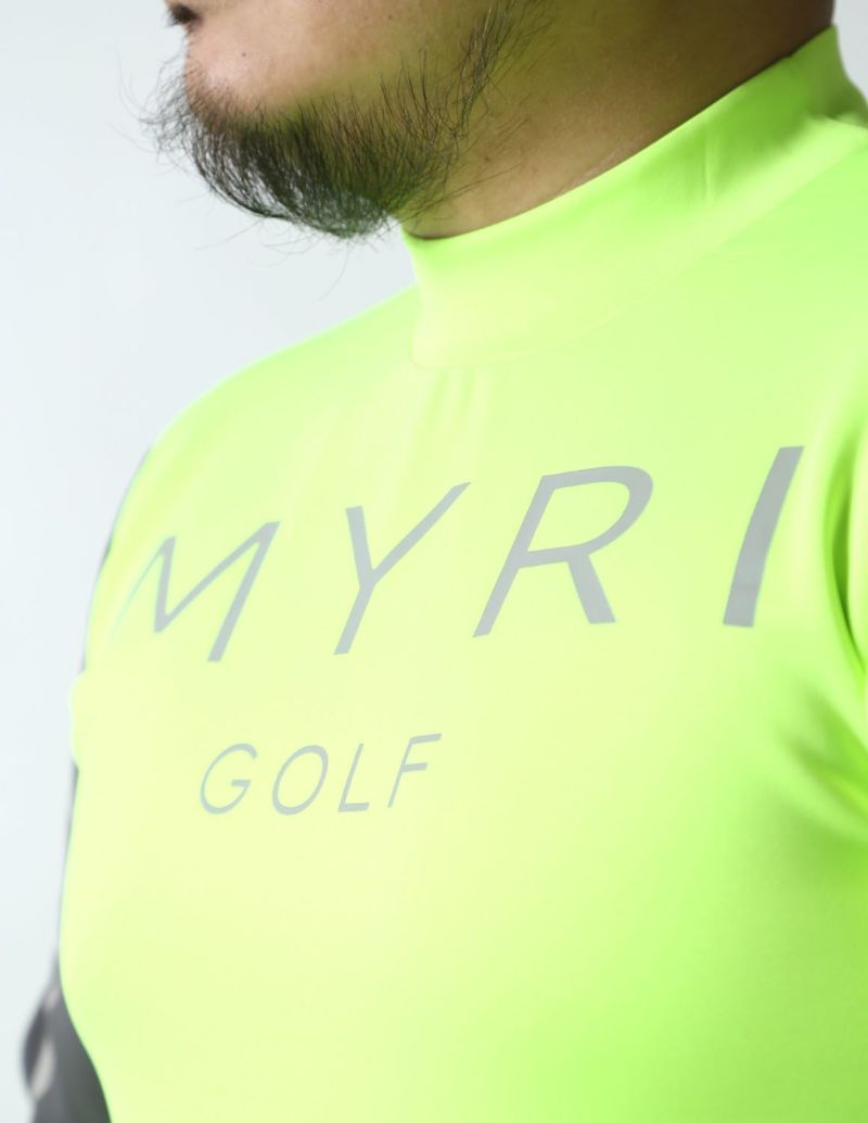 ゴルフとカジュアルを両立させたデザインのBIGプリントの右袖切替モックネックTシャツが登場。
