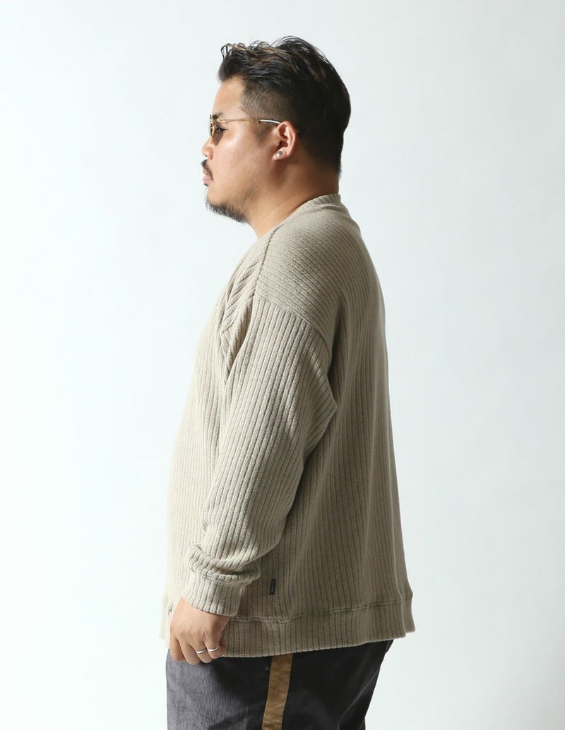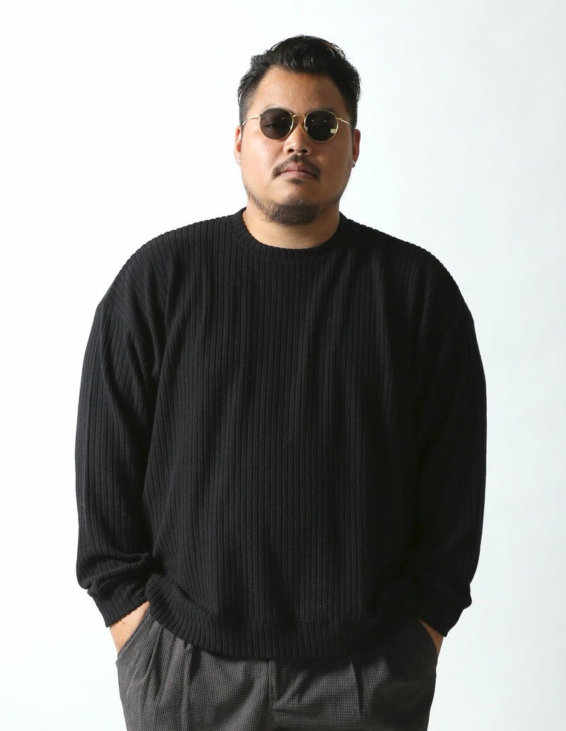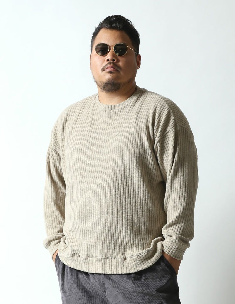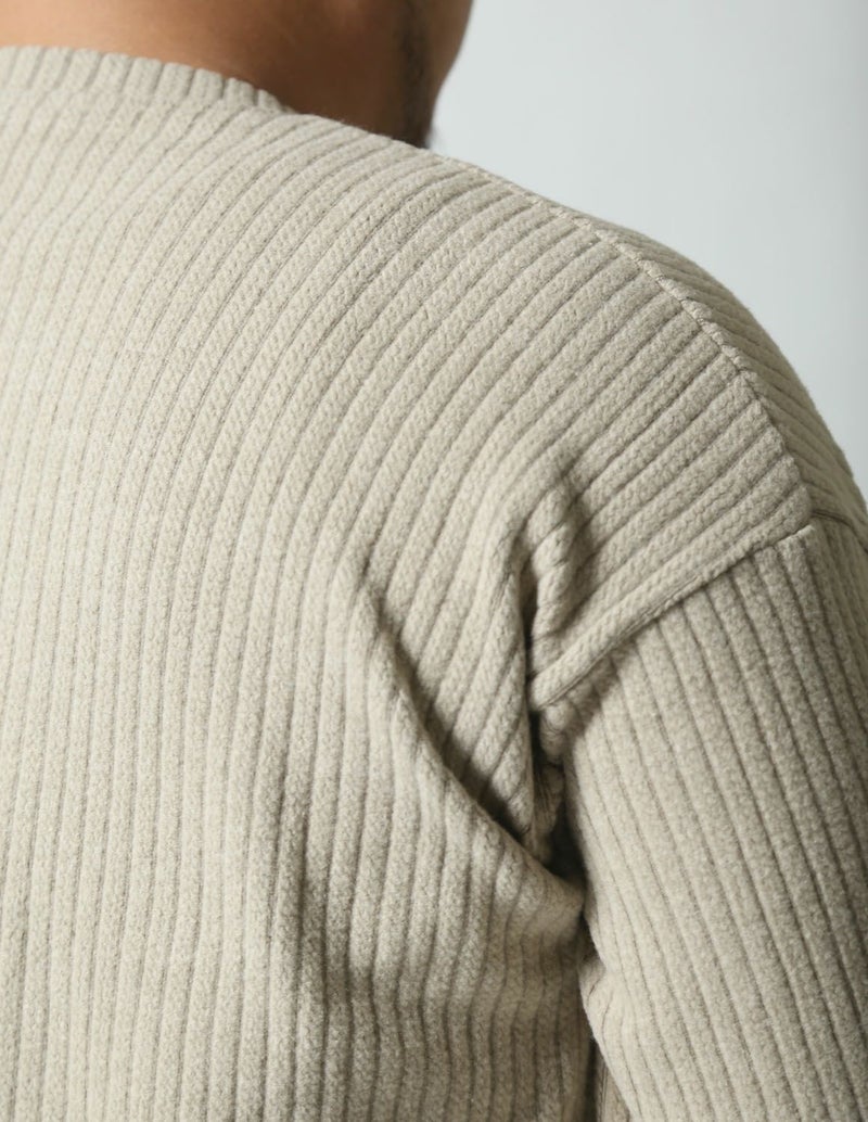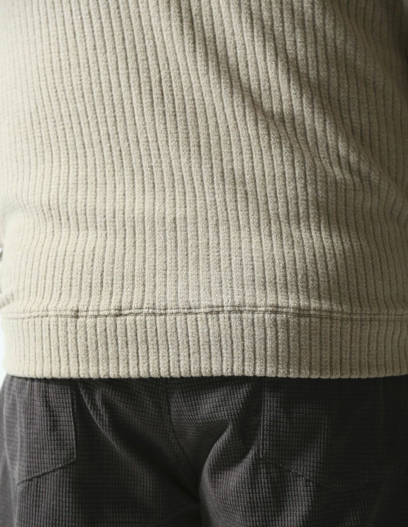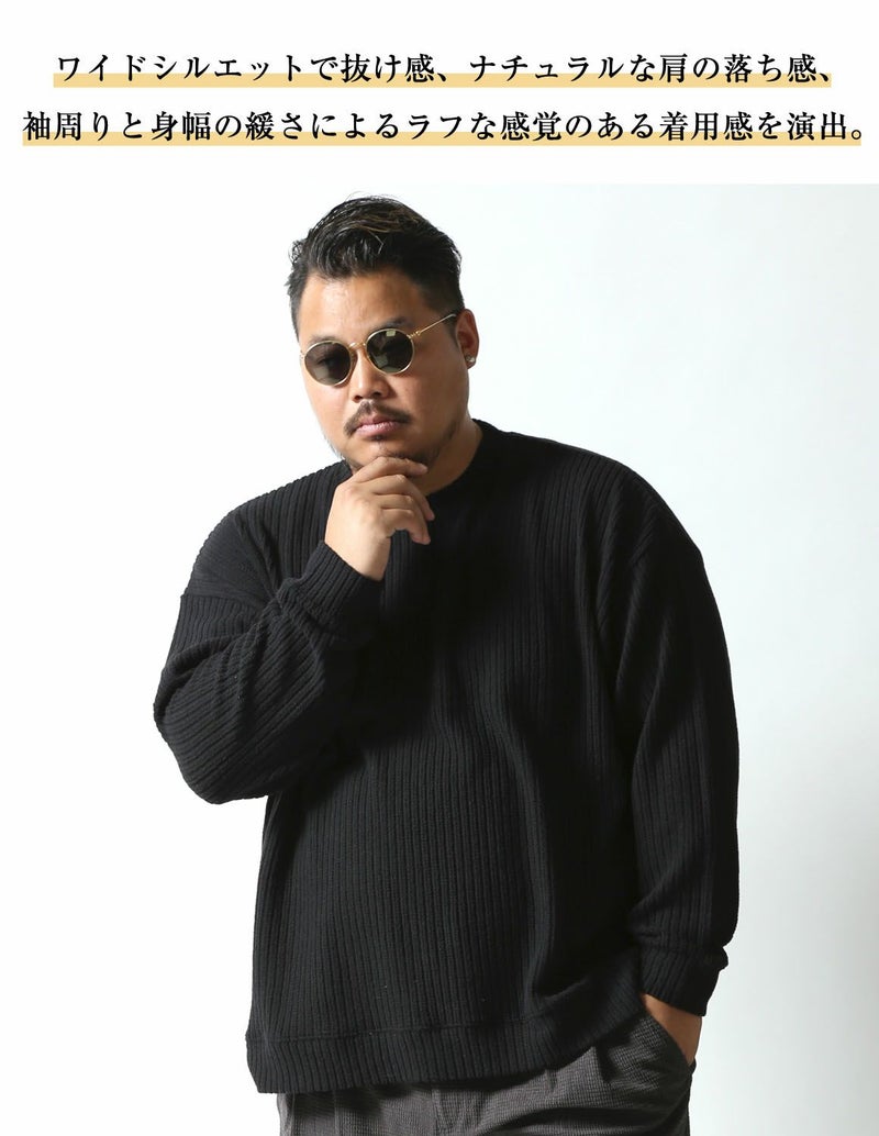 ストライプ状の凹凸表情が特長の生地を使用したワイドシルエットの「魅了グリズリー 」ニットソー風ロングスリーブTシャツが登場。