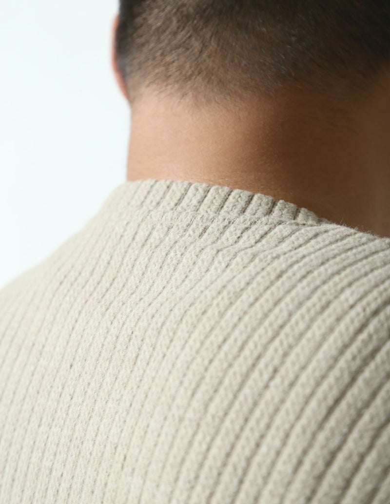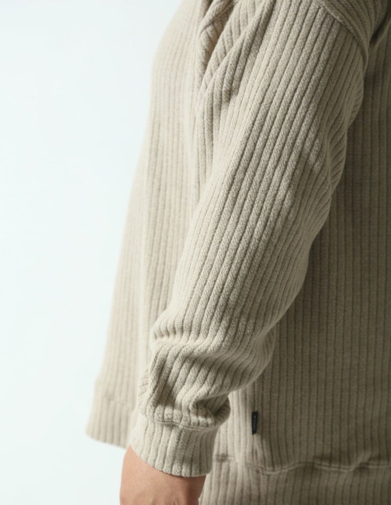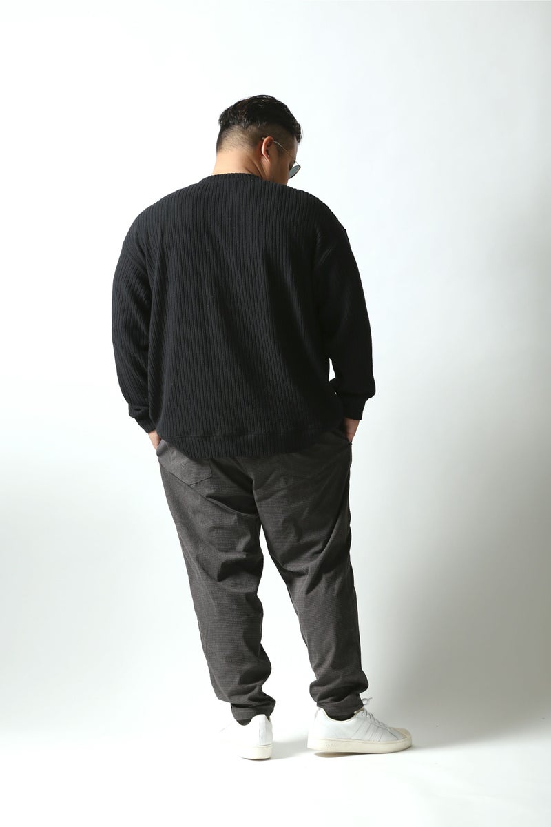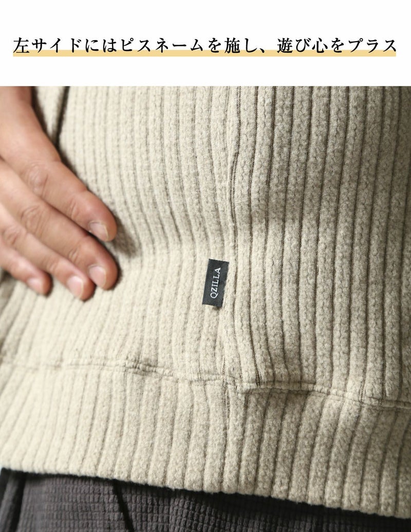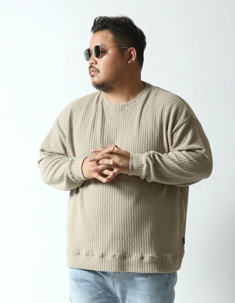 ストライプ状の凹凸表情が特長の生地を使用したワイドシルエットの「魅了グリズリー 」ニットソー風ロングスリーブTシャツが登場。