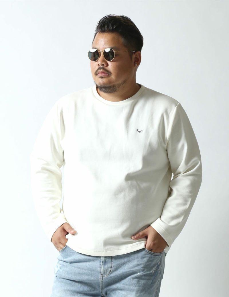こちらのロンTは厚手でハリがあるので、体型を拾いにくいのも良いところです。