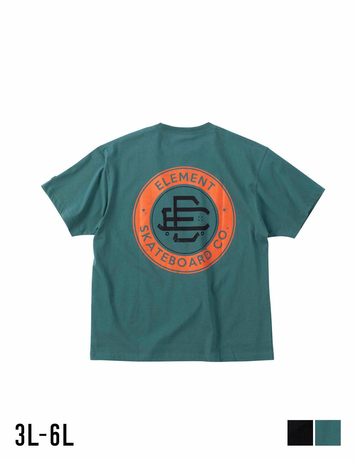 【大きいサイズ メンズ】ELEMENT (エレメント) ROUND バックプリント ワッペン 半袖Tシャツ カットソー 3L/4L/5L/6L/