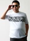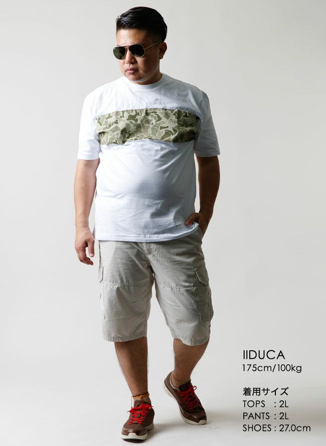 迷彩の柄がお洒落なTシャツ。1枚で着てもいいですが、無地のシャツを重ねてきてもお洒落です。パンツは、どんなカラーとも相性抜群です。