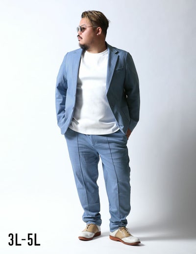 180*96で5L 最初ね、一目見たとき「あ~これお笑いの土佐兄弟のお兄ちゃんだわ」って思ったわけです。 ブルーのセットアップだし。 でもデニム生地だし、指し色の黄色が鮮やかできれいだし・・・と思って自分へのボーナスと思って購入。 期待していなかったわけじゃない。 QZILLAだもの、絶対土佐兄弟よりいいに違いない。 でもどうしても土佐兄弟がちらつくの。 もしくは銀シャリがちらつくの。 でも画像からはかなり品の良さがただようし、まあ間違いはないかなと思って。 少し厚手の生地ですが、着心地はよくデニム特有のごわつき感も少ない感じでとてもいいです。 夏以外の、どの時期に来てもきれいに決まる感じ。 デニムだしブルーだしやんちゃな感じになるかと思ったのですが、シルエットもきれいなので荒ぶってる感じには絶対ならないし、年齢関係なく合わせやすいです。 上流階級の休日って感じです。 デニム生地なので、何とでも合うし、何と合わせても簡単に決まって品よく見せたい時には毎回これ着ておでかけしてます。 これとストレッチシャツの白鯨合わせましたが、相当良かったです。 無理やりケチつけるとしたら、体型に合わせると少し袖が長いかな?ってところだけですね。 見た目、着心地ともに値段以上です。 絶対買って損ないと思います。
