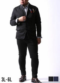 【大きいサイズ メンズ】ストライプ柄 イタリアン襟 ストレッチ セットアップ 上下セット カジュアルスーツ 3L/4L/5L