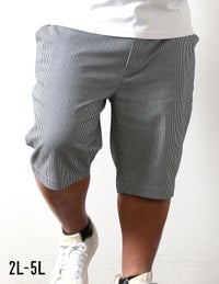 【大きいサイズ メンズ】QZILLA BREEZE-STRIPE ハーフパンツ ヒッコリー柄 ストライプ デニム風 ストレッチ 2L/3L/4L/5L
