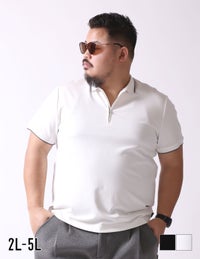 【大きいサイズ メンズ】QZILLA ZIP POLO ハーフジップ ライン 鯨刺繍 半袖ポロシャツ ゴルフ 美シルエット2L/3L/4L/5L