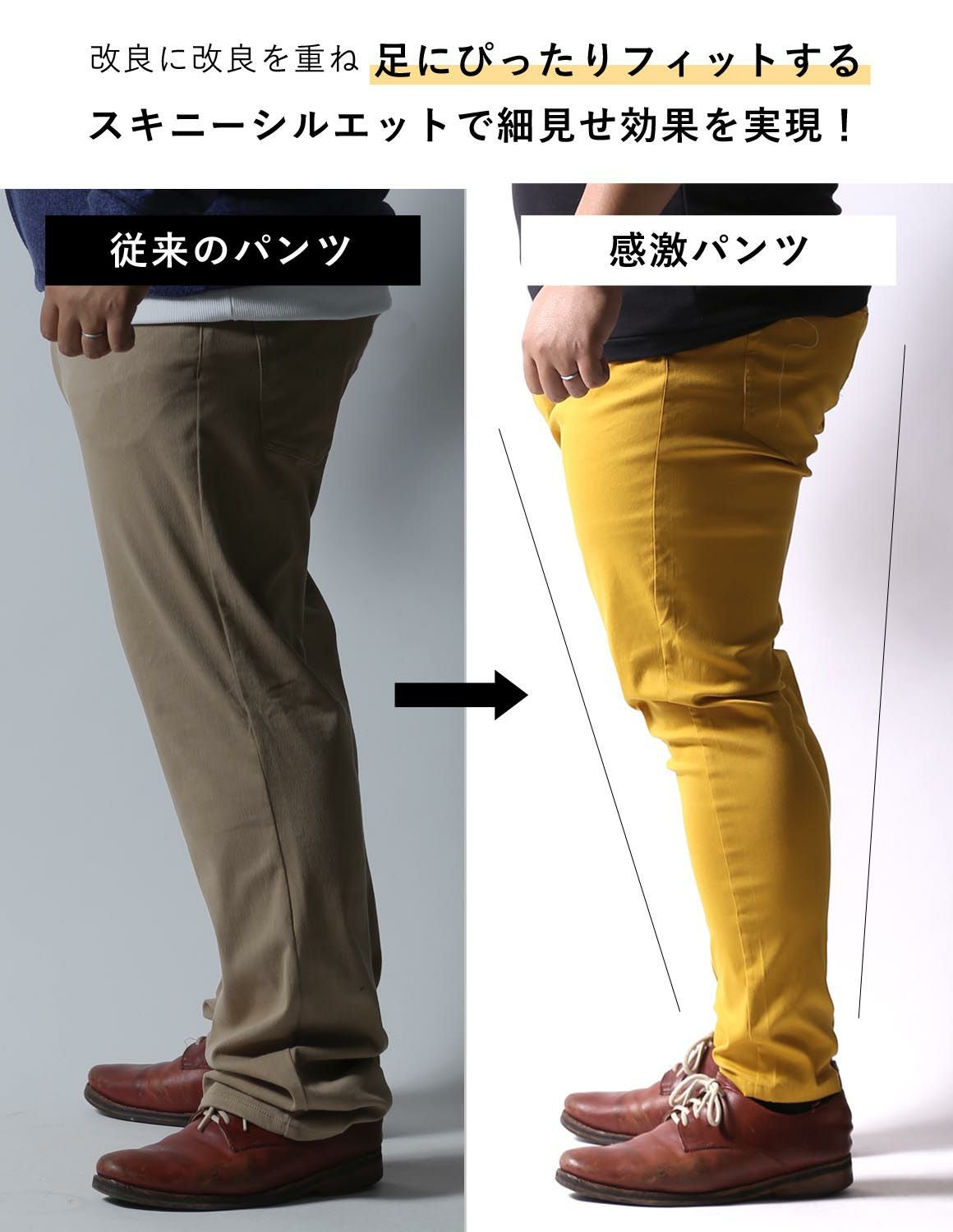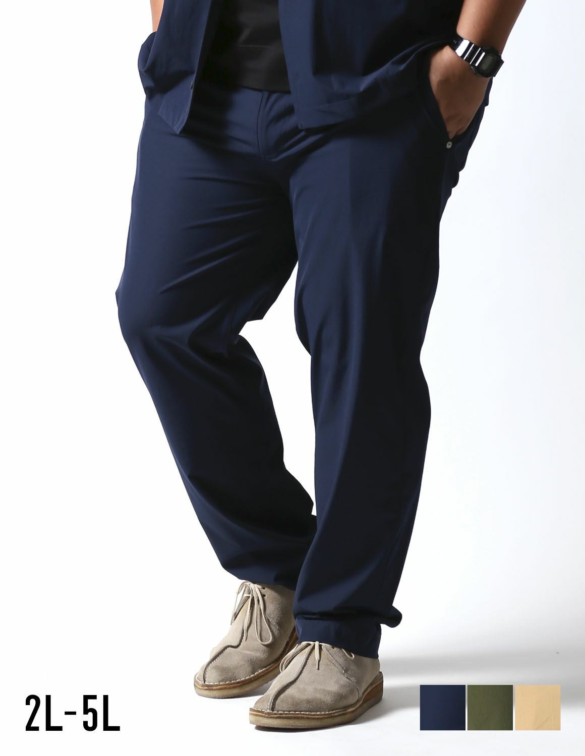 [再入荷決定!まもなく予約開始!] 【大きいサイズ メンズ】感鯨パンツ カラーパンツ ストレッチ スリム テーパード チノパン 2L/3L/4L/5L