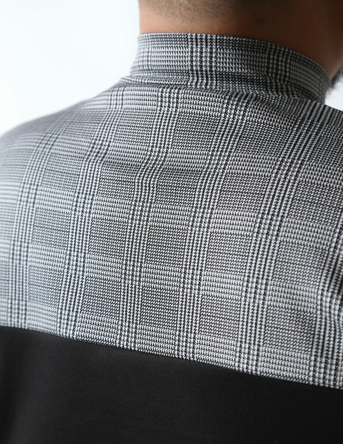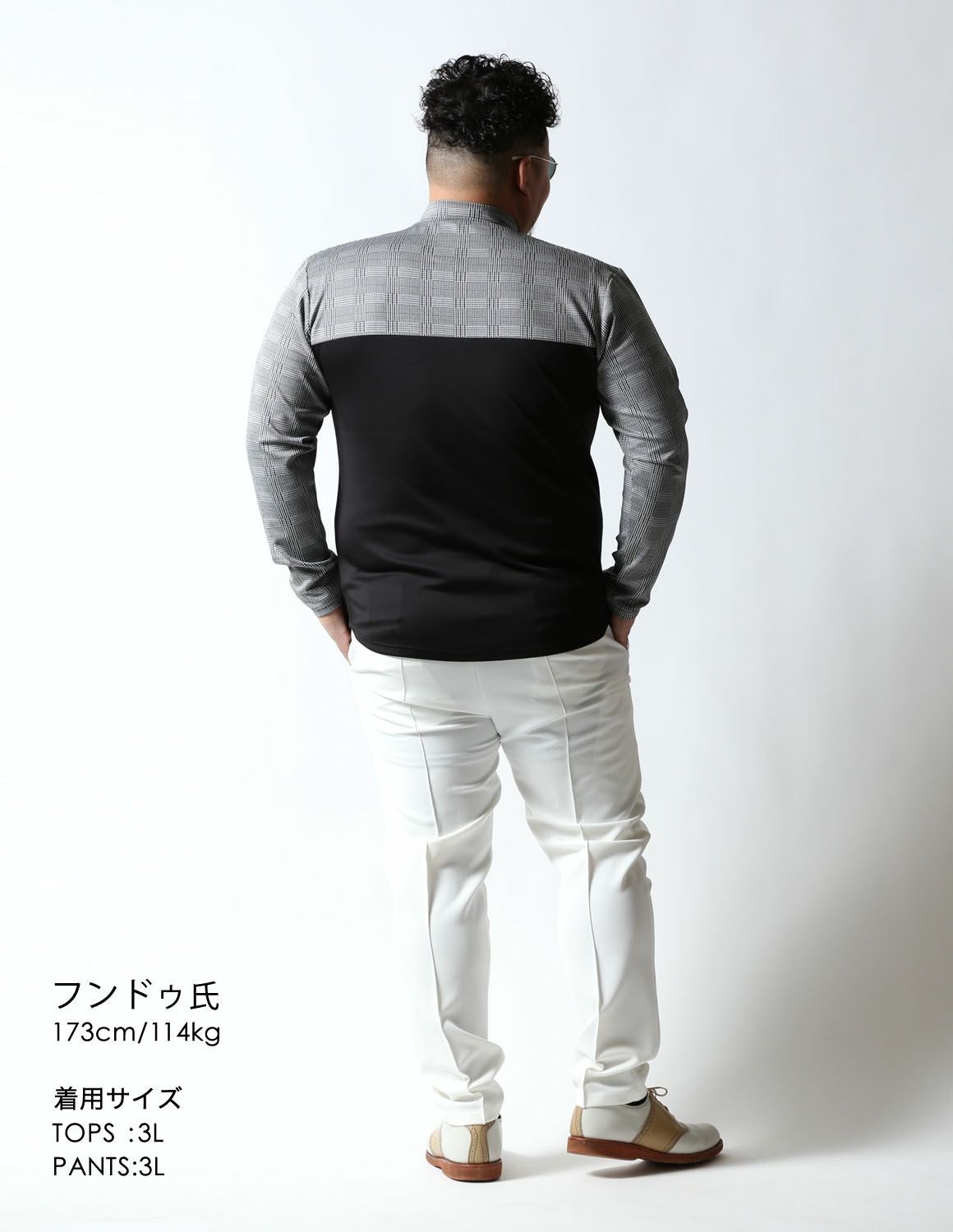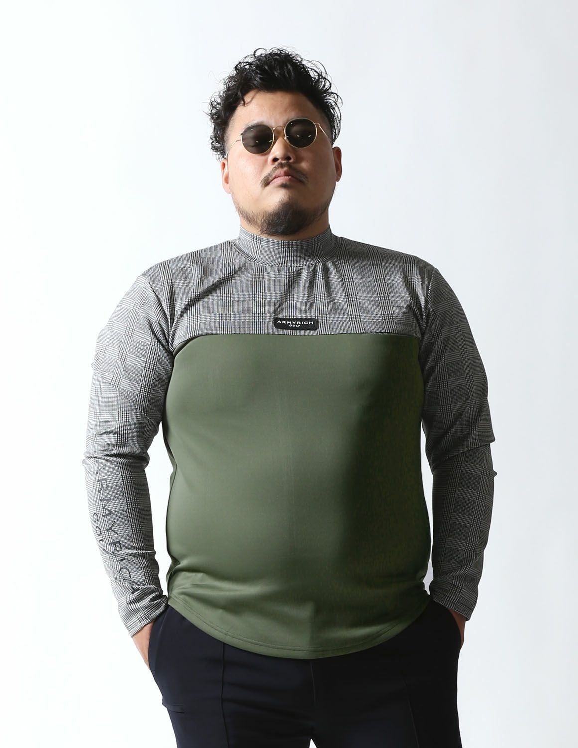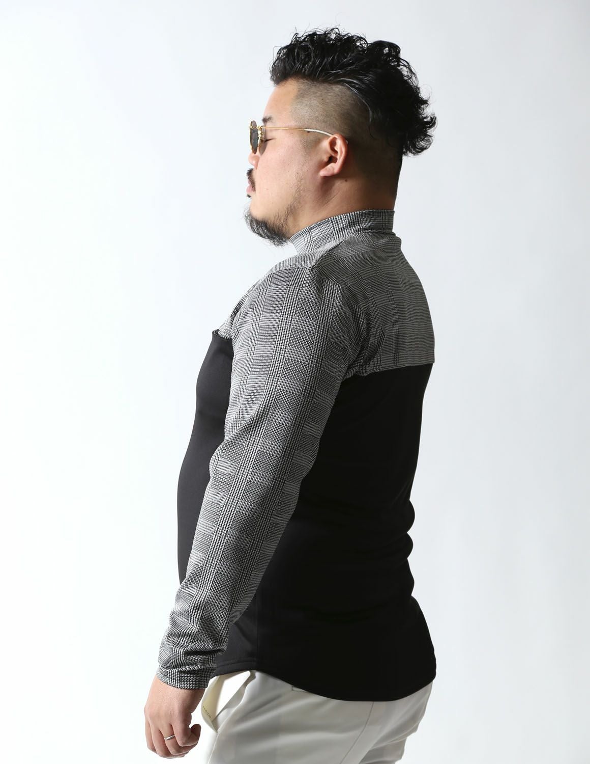 【大きいサイズ メンズ】モックネック グレンチェック 切替 スパンデックス ストレッチ ゴルフ 長袖Tシャツ 3L