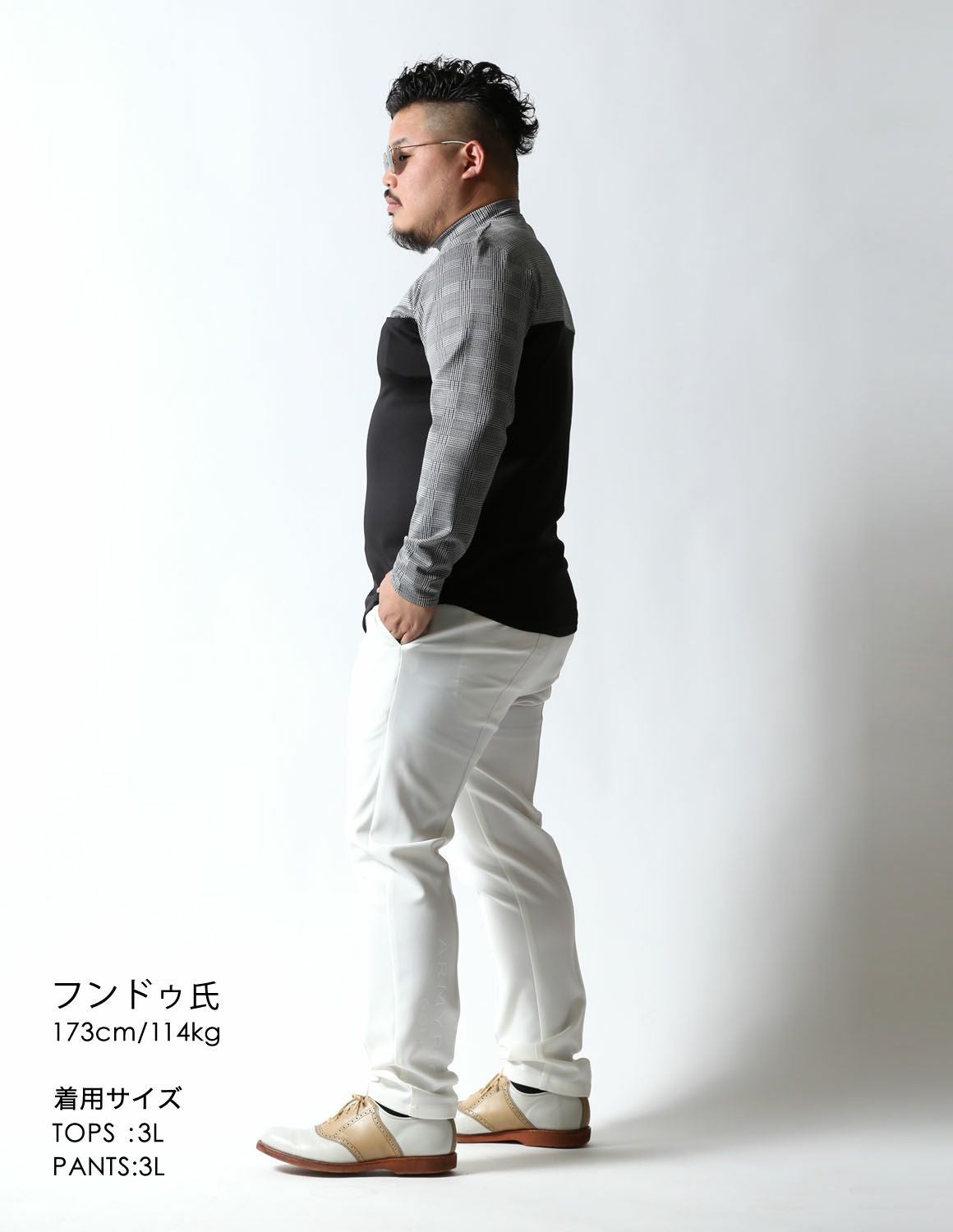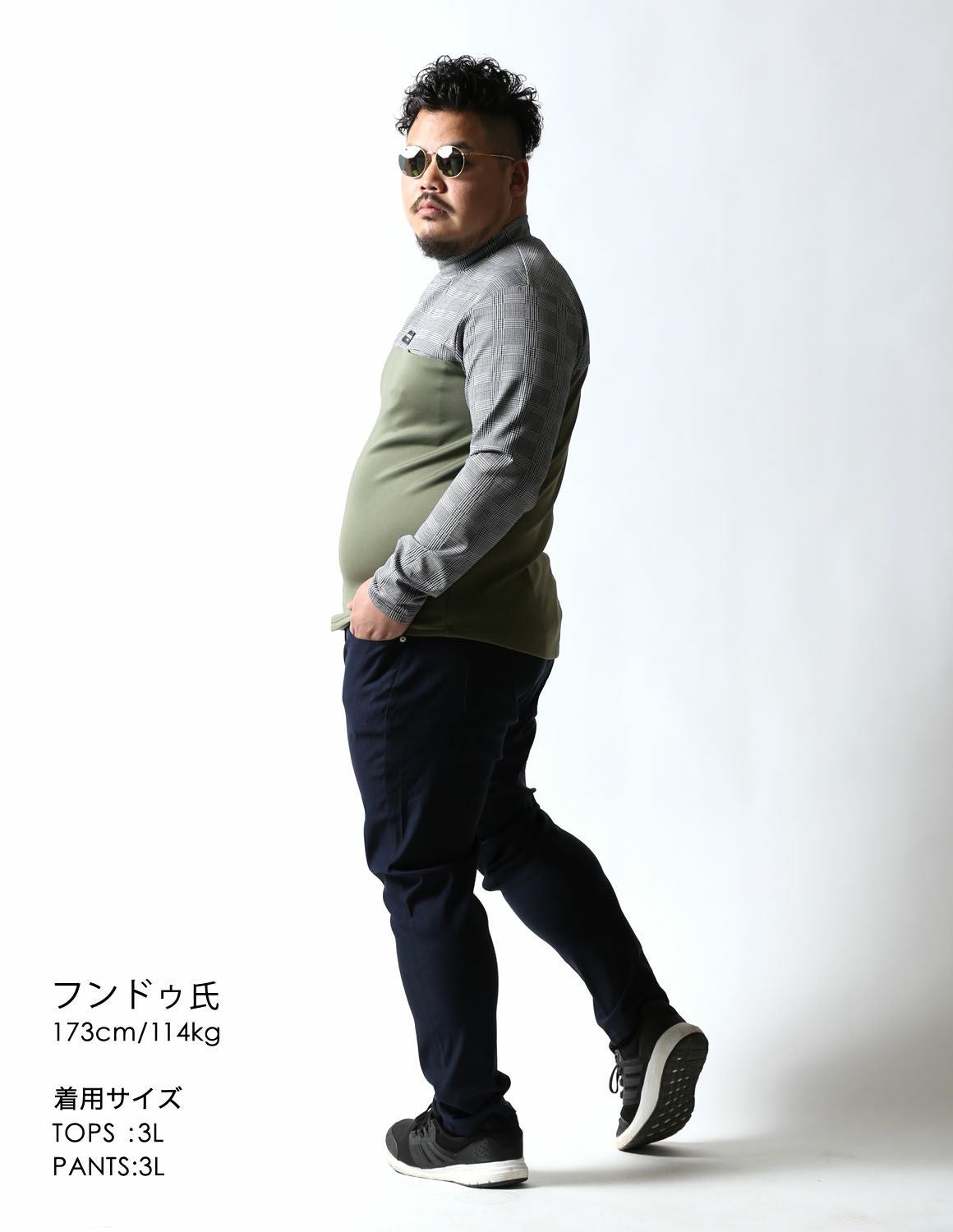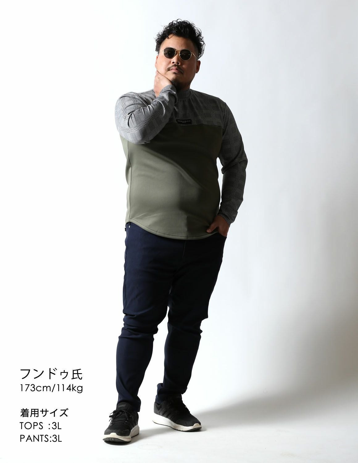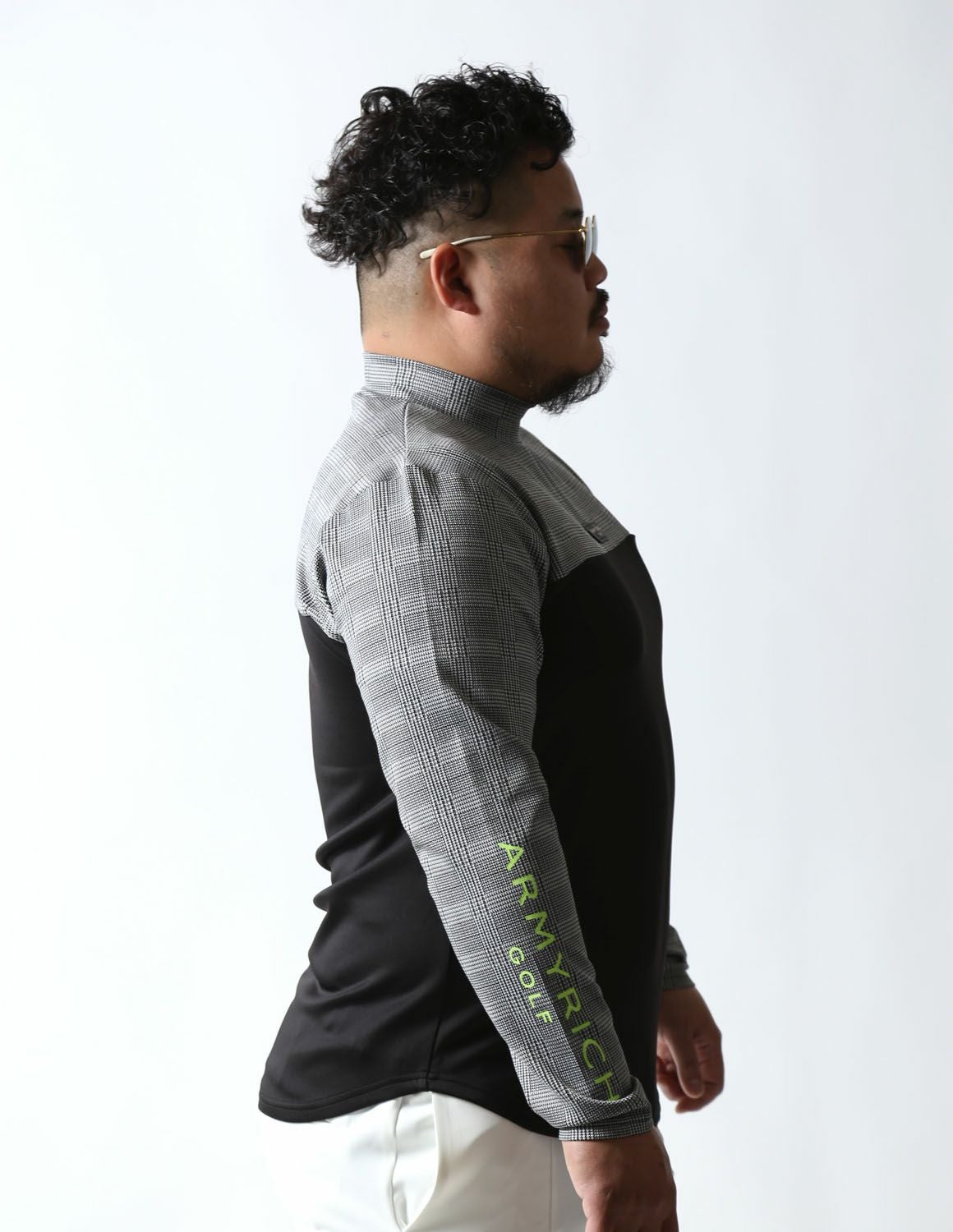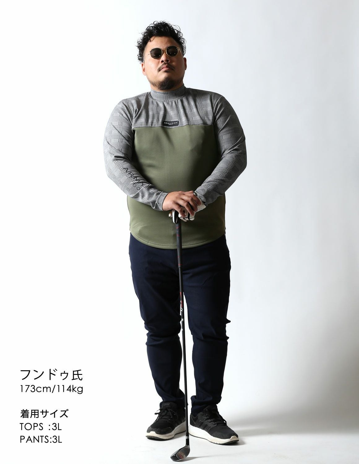 【大きいサイズ メンズ】モックネック グレンチェック 切替 スパンデックス ストレッチ ゴルフ 長袖Tシャツ 3L