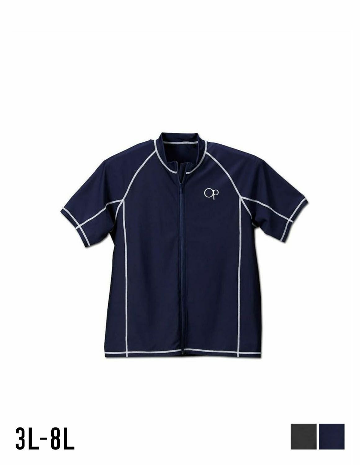 【大きいサイズ メンズ】OCEAN PACIFIC (オーシャンパシフィック) UV加工 ストレッチ フルジップ 半袖 ラッシュガード 3L/4L/5L/6L/8L
