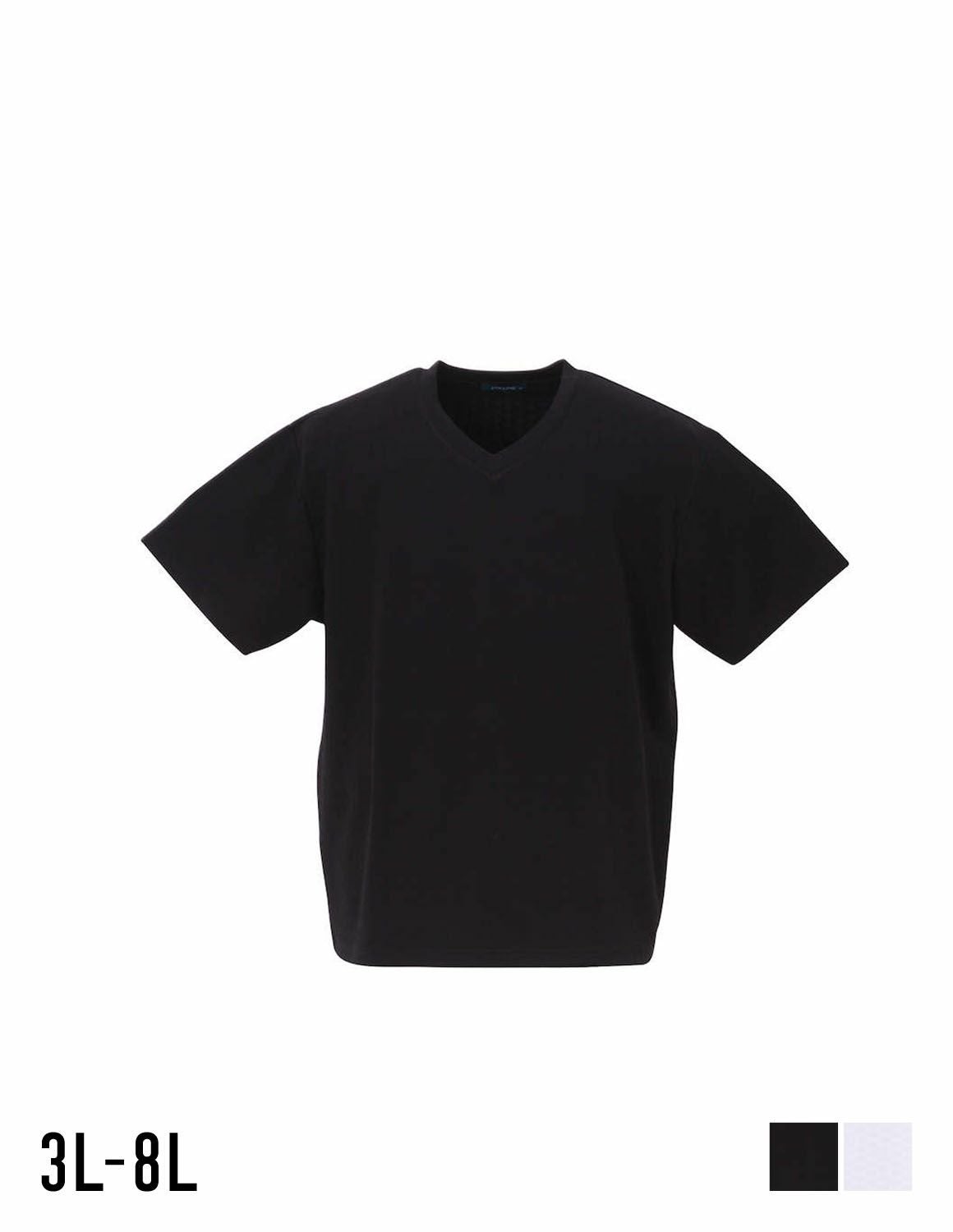 【大きいサイズ メンズ】格子ジャガード ストレッチ Vネック 半袖Tシャツ カットソー 3L/4L/5L/6L/8L