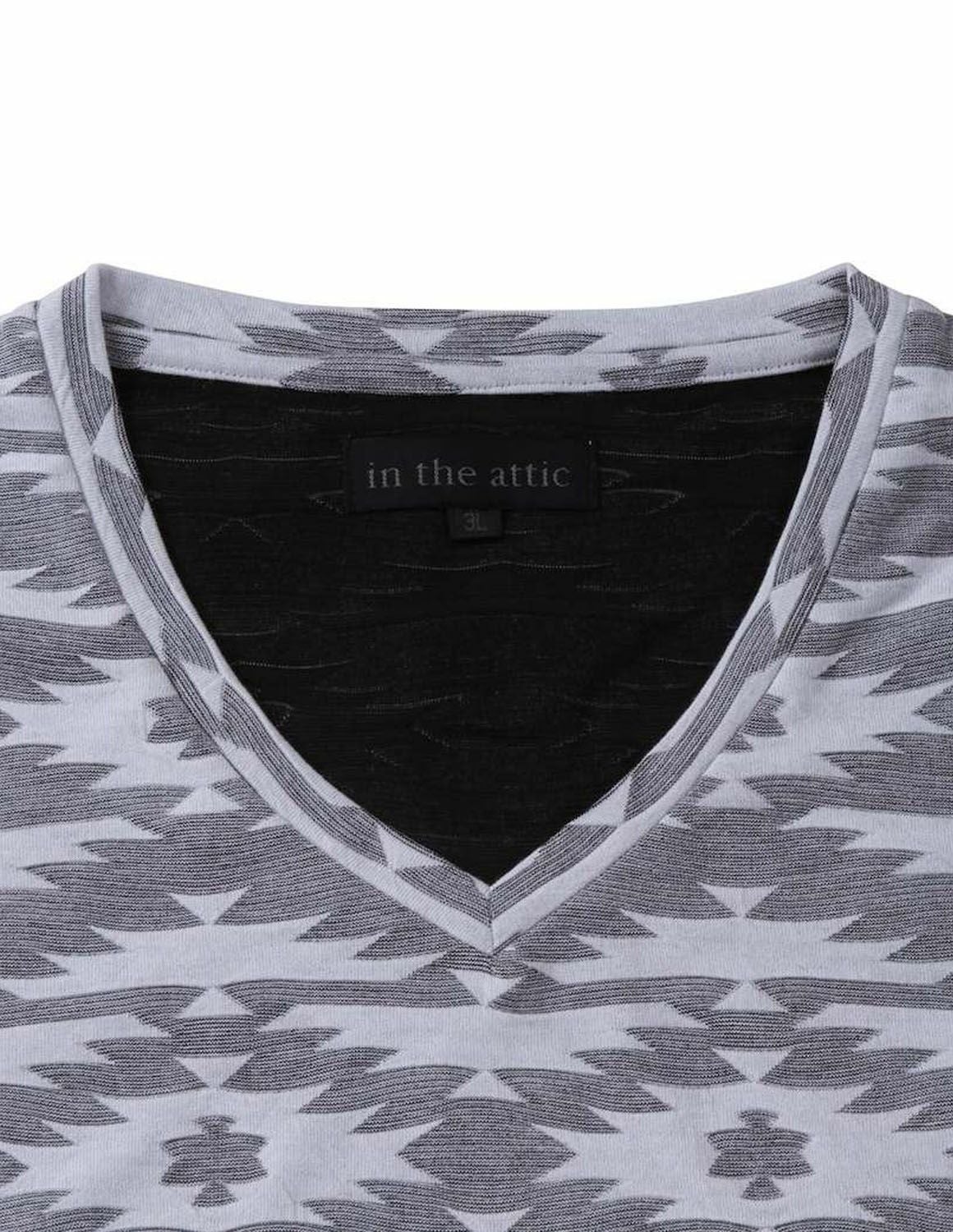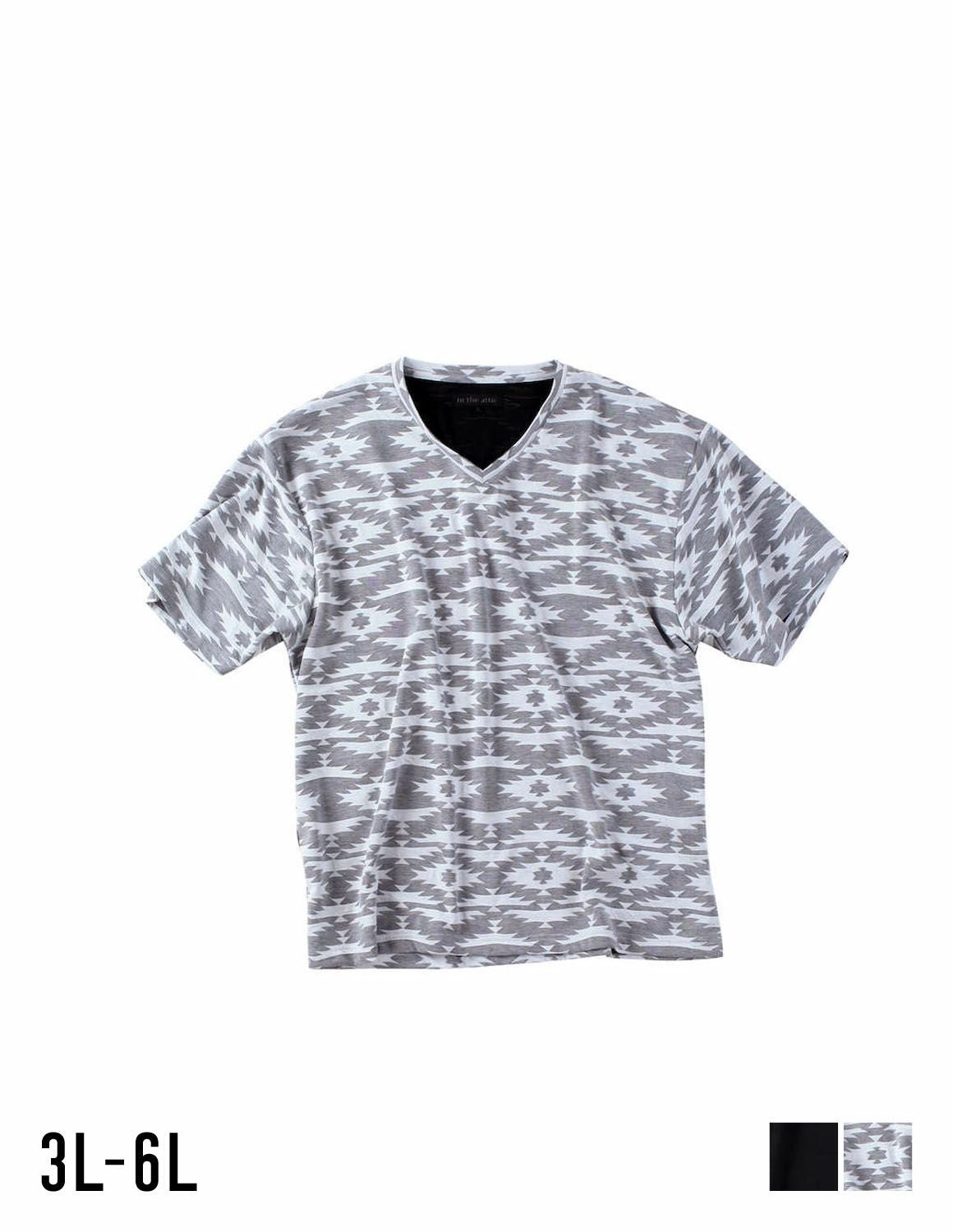 【大きいサイズ メンズ】in the attic (インジアティック) 膨れオルテガジャガード ストレッチ Vネック 半袖Tシャツ カットソー 3L/4L/5L/6L/
