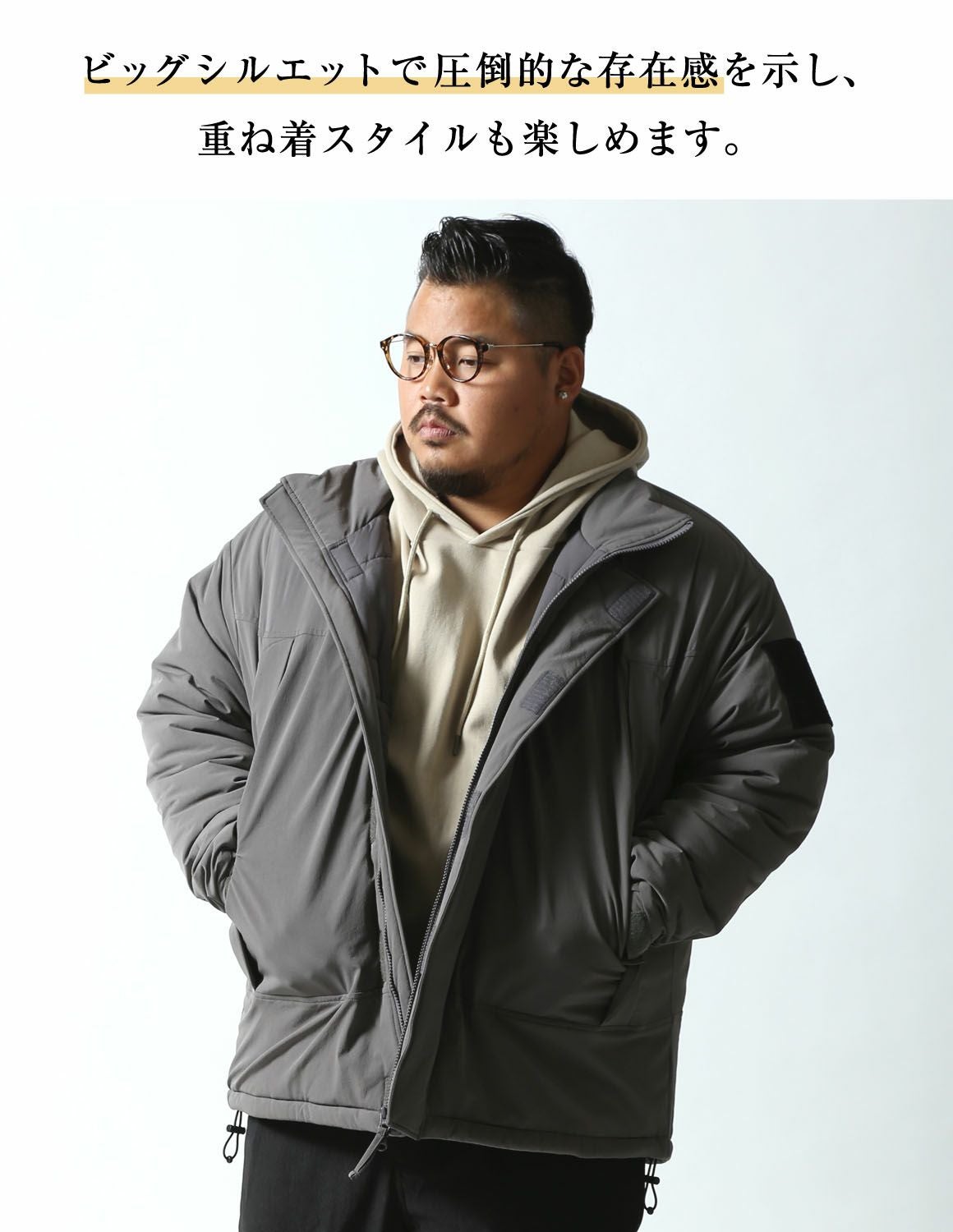 【大きいサイズ メンズ】mohamoha モンスタ-アウター ストレッチ 中綿 モンスターパーカー 2L/3L/4L/5L/