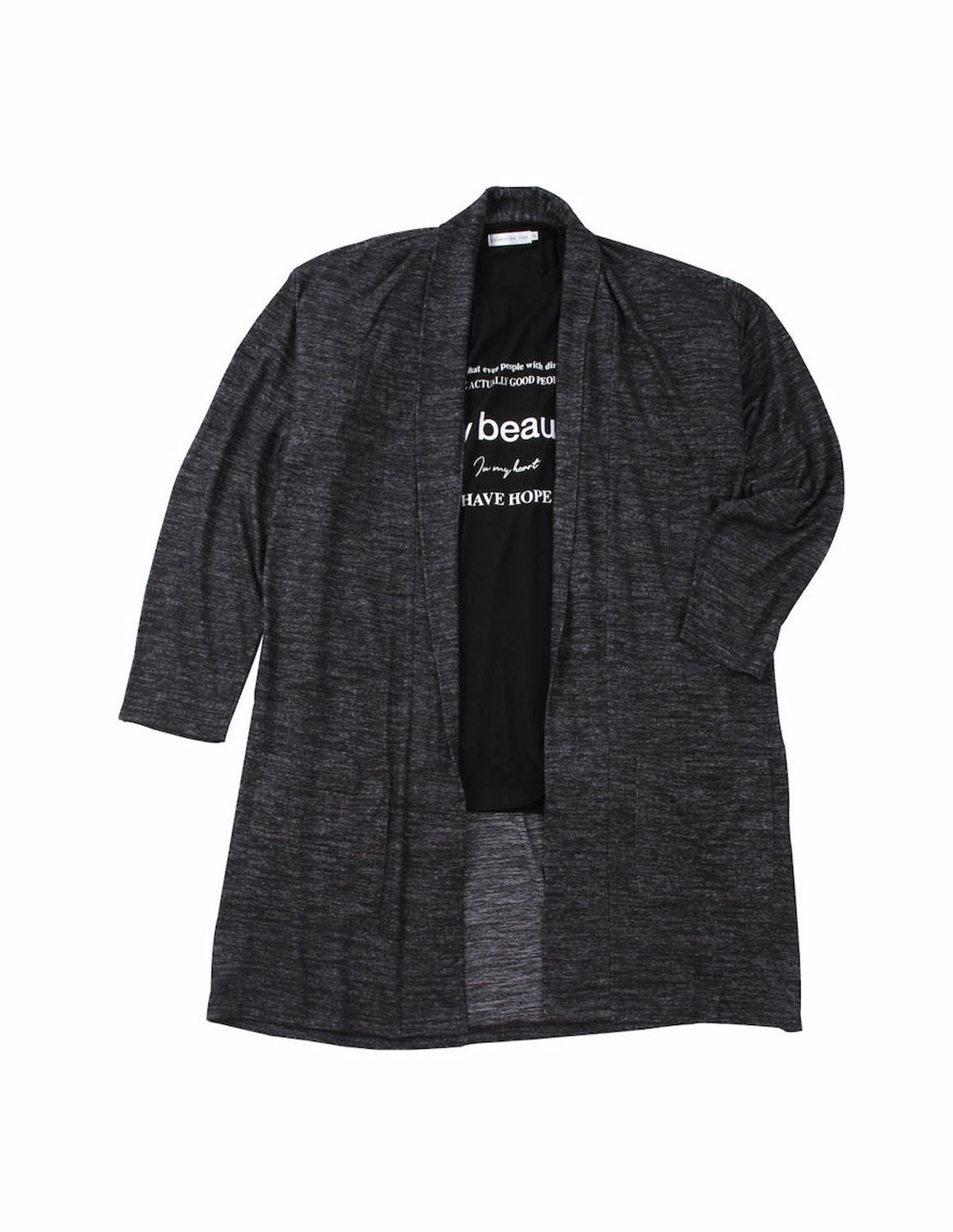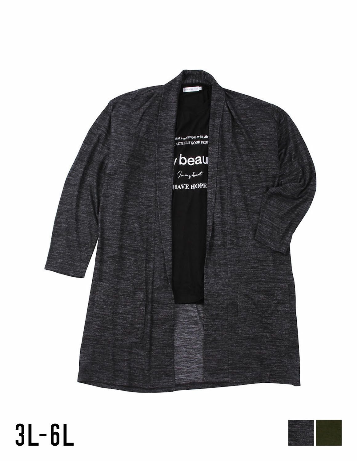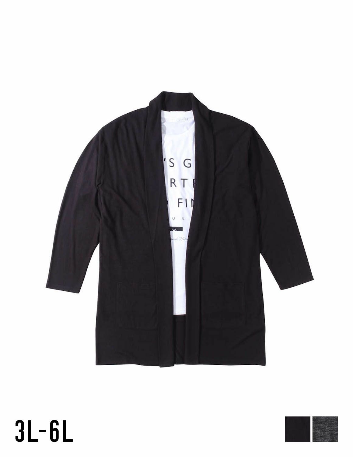 【大きいサイズ メンズ】launching pad(ランチングパッド) 表起毛天竺 ストレッチ 長袖コーディガン 半袖Tシャツ セット 3L/4L/5L/6L