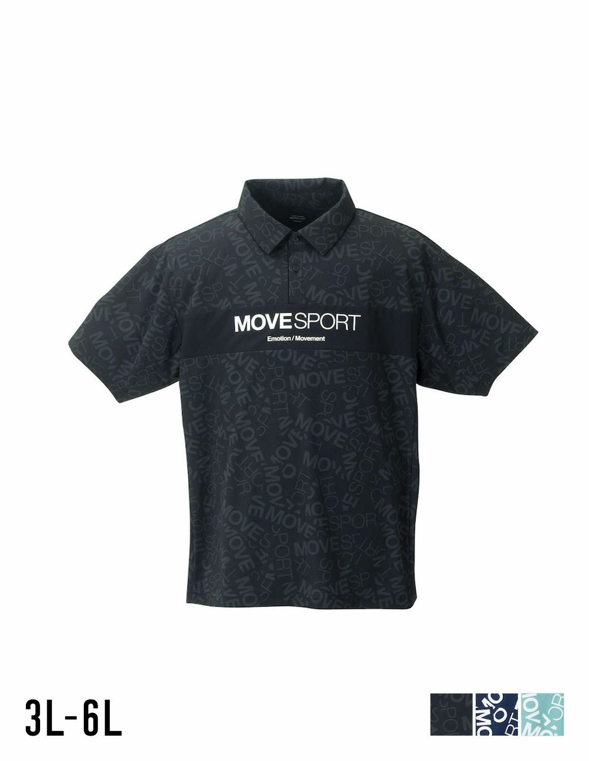 【大きいサイズ メンズ】MOVESPORT (ムーブスポーツ) SUNSCREEN 吸汗速乾 UVカットストレッチ ミニ鹿の子 総柄グラフィック半袖ポロシャツ 3L/4L/5L/6L/