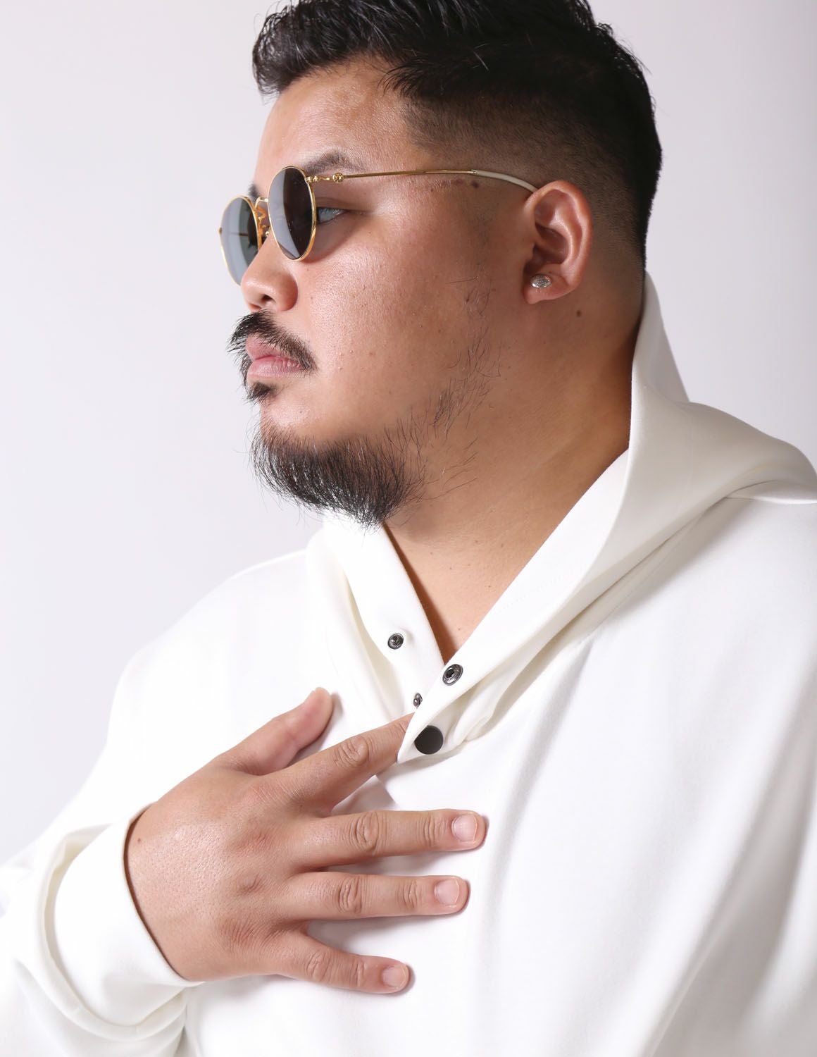 [ユニセックス] 【大きいサイズ】Beluca(ベル―カ)ストレッチバンドカラー長袖カジュアルシャツ 白鯨(はくげい) 2L/3L/4L/