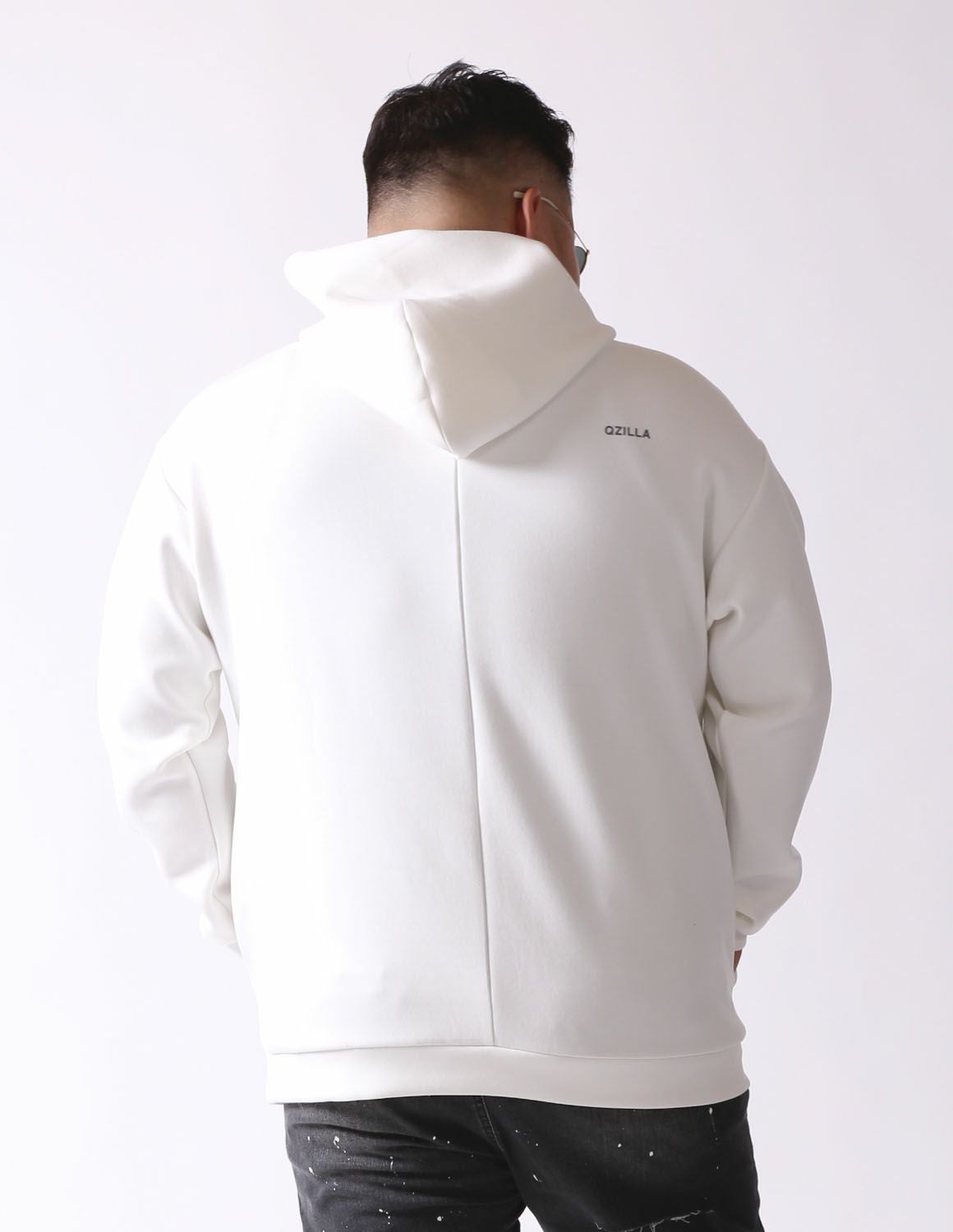 【大きいサイズ メンズ】QZILLA 感鯨パーカー "chill" ストレッチ ボリュームネック ラバープリント プルオーバー 2L/3L/4L/5L/