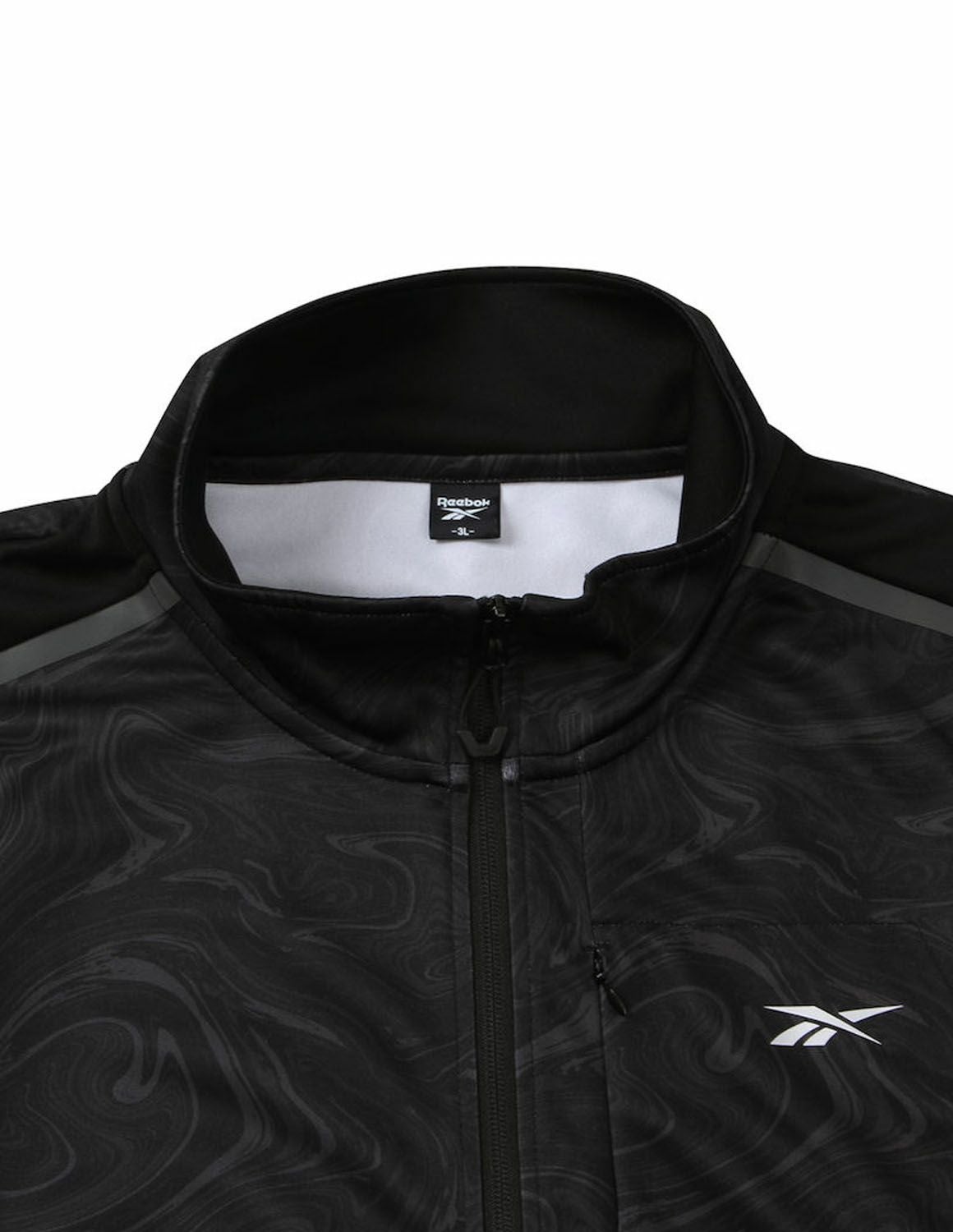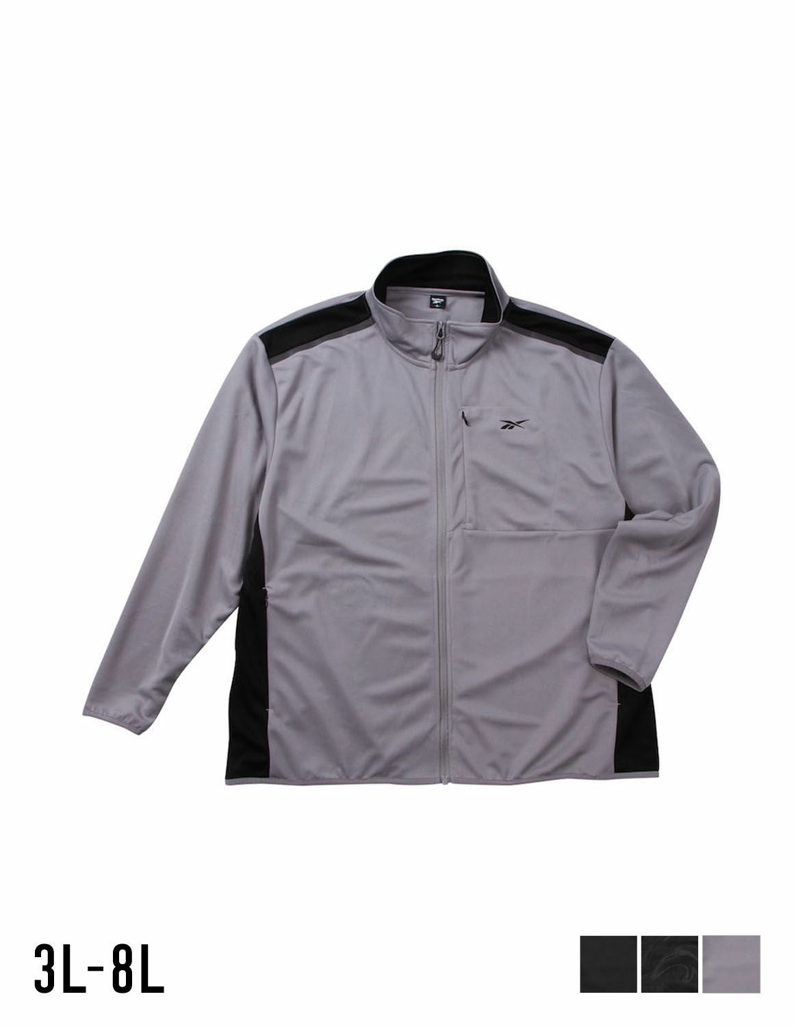 【大きいサイズ メンズ】Reebok(リーボック) ストレッチ 切替 スタンドカラー バックプリント ファスナー付きポケット フルジップ ジャージ ジャケット 3L/4L/5L/6L/8L