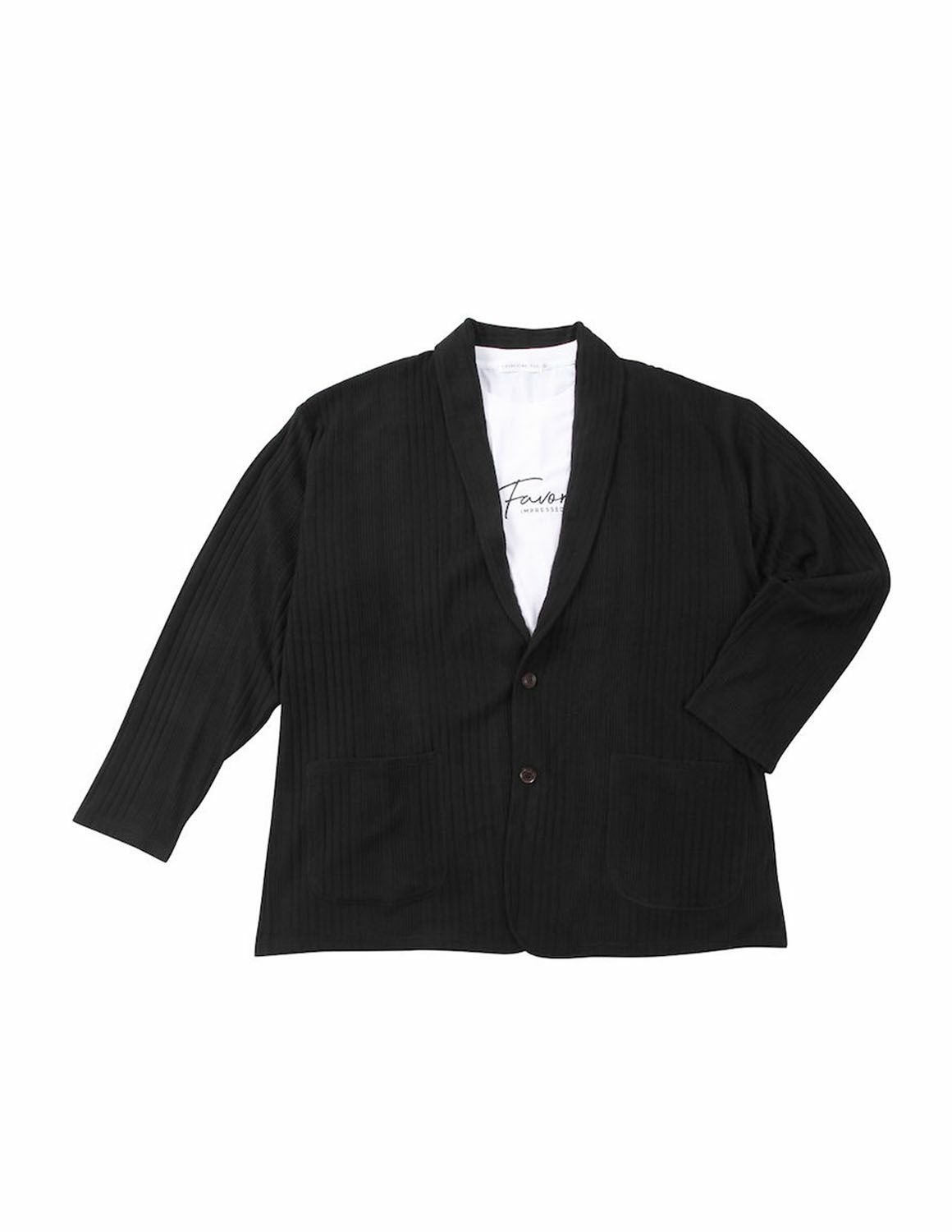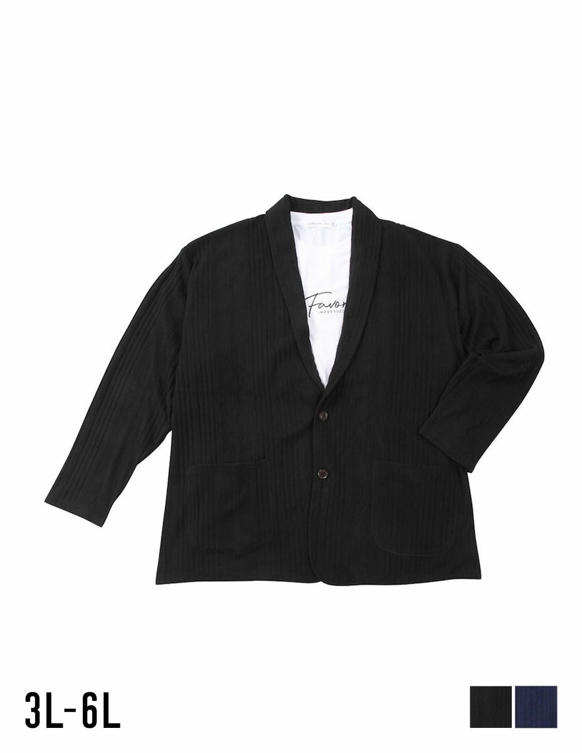 【大きいサイズ メンズ】launching pad(ランチングパッド) 針抜きストライプ ストレッチ 長袖ショールジャケット 半袖Tシャツ セット 3L/4L/5L/6L