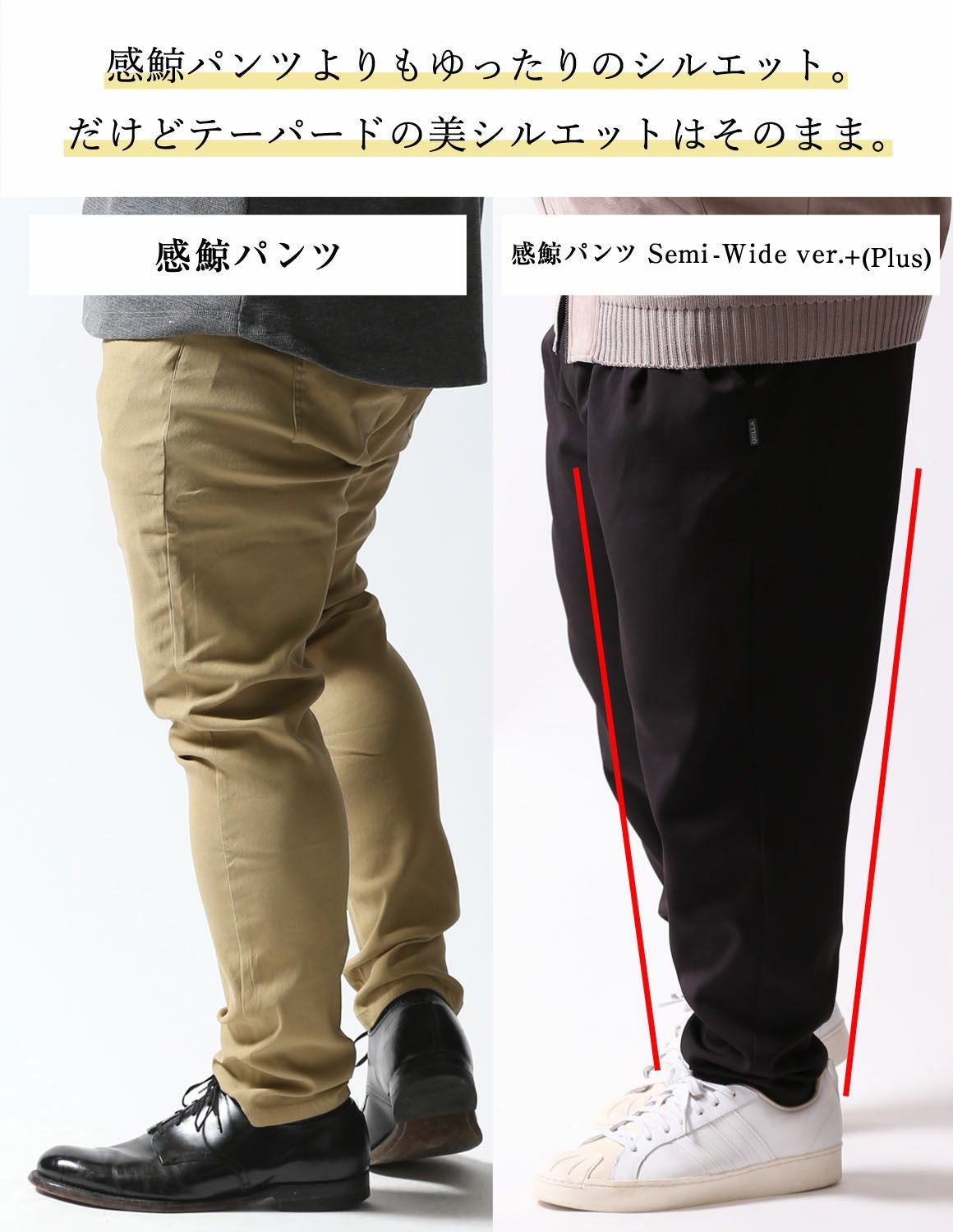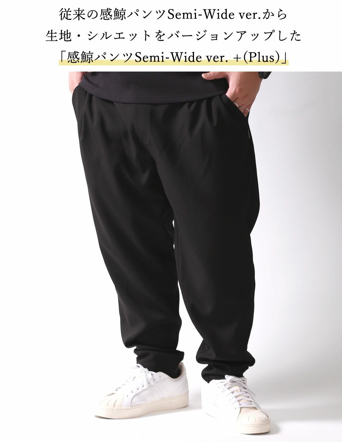 【新色ダークブラウンとブラックが再入荷】 【大きいサイズ メンズ】QZILLA 感鯨パンツ semi-wide ver. +[Plus] 美シルエット ワイドテーパードパンツ 2L/3L/4L/5L