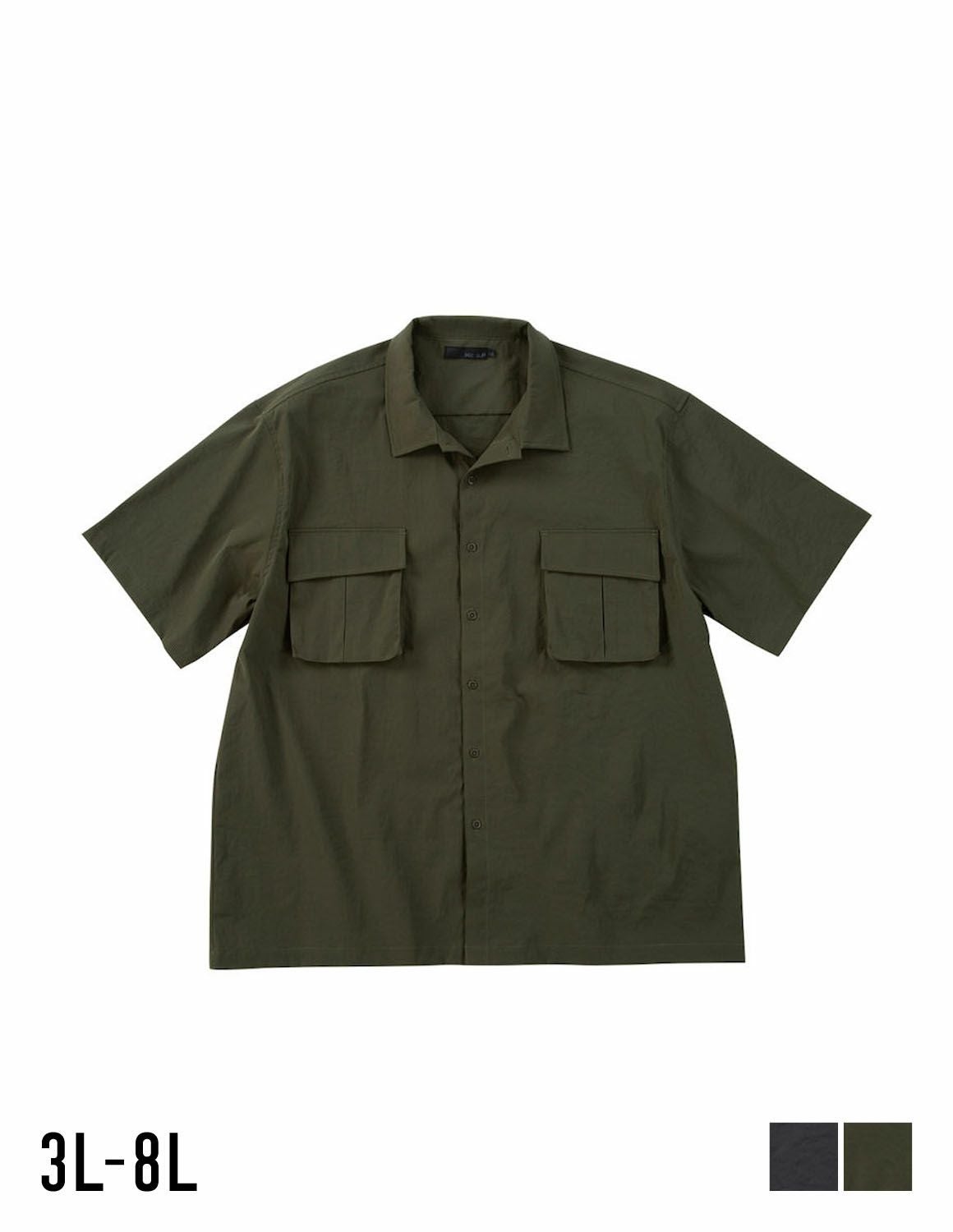【大きいサイズ メンズ】ROOT THREE (ルートスリー)胸ポケット ストレッチ オープンカラー半袖シャツ カジュアルシャツ 3L/4L/5L/6L/7L/8L/