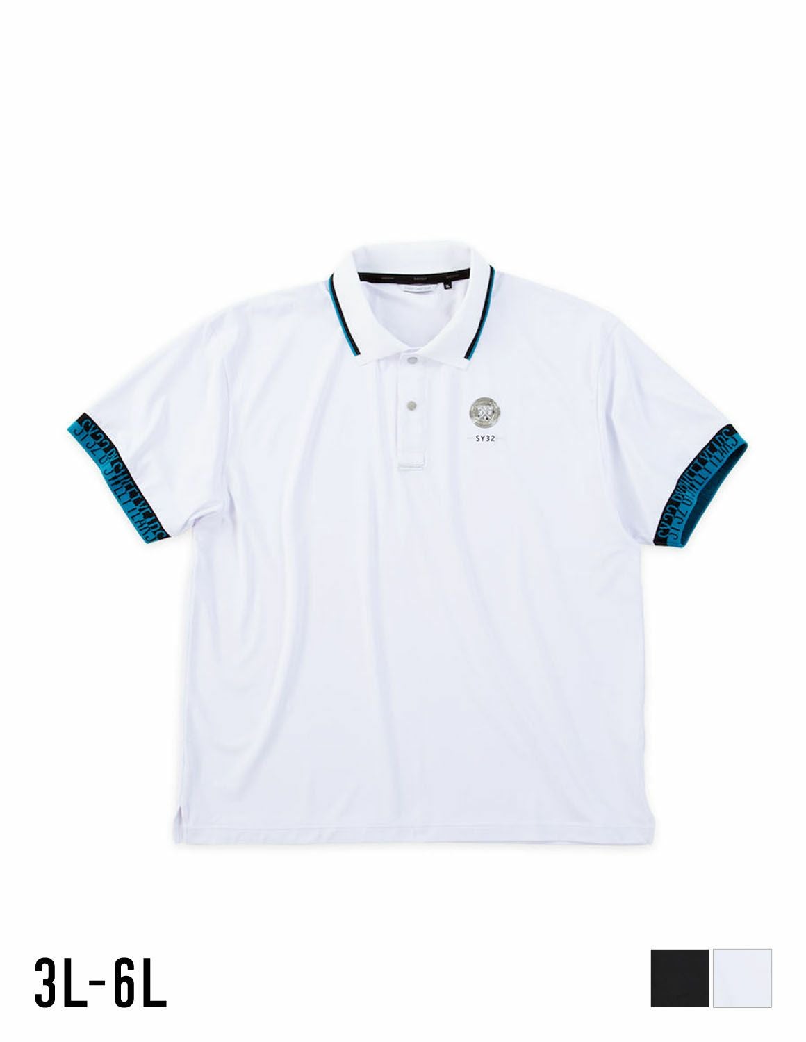 【大きいサイズ メンズ】SY32 by SWEET YEARS(エスワイサーティトゥバイスィートイヤーズゴルフ) ライトストレッチ ワッペン 吸水速乾 通気性 スナップボタン 刺繍 サイドスリット 半袖ポロシャツ 3L/4L/5L/6L