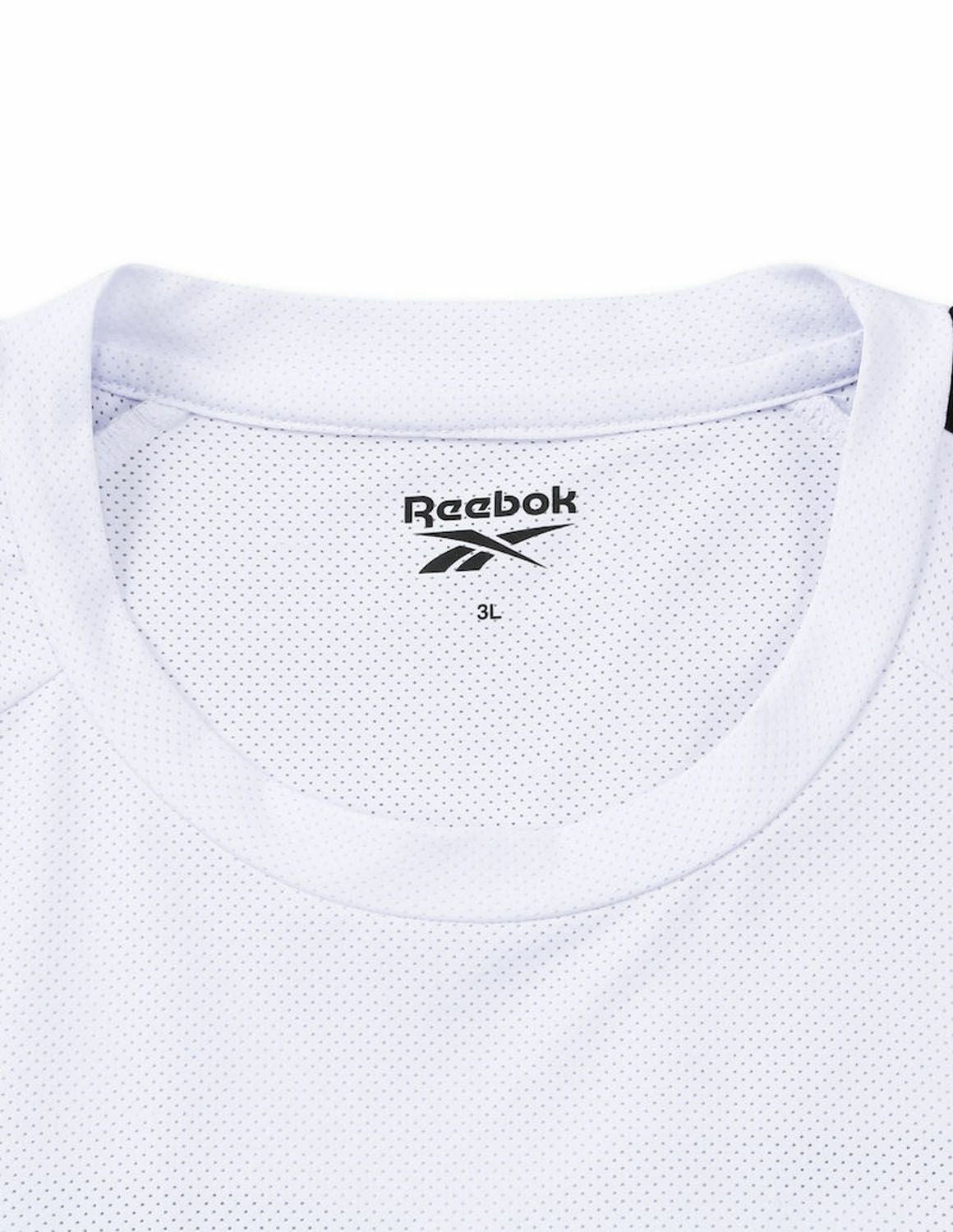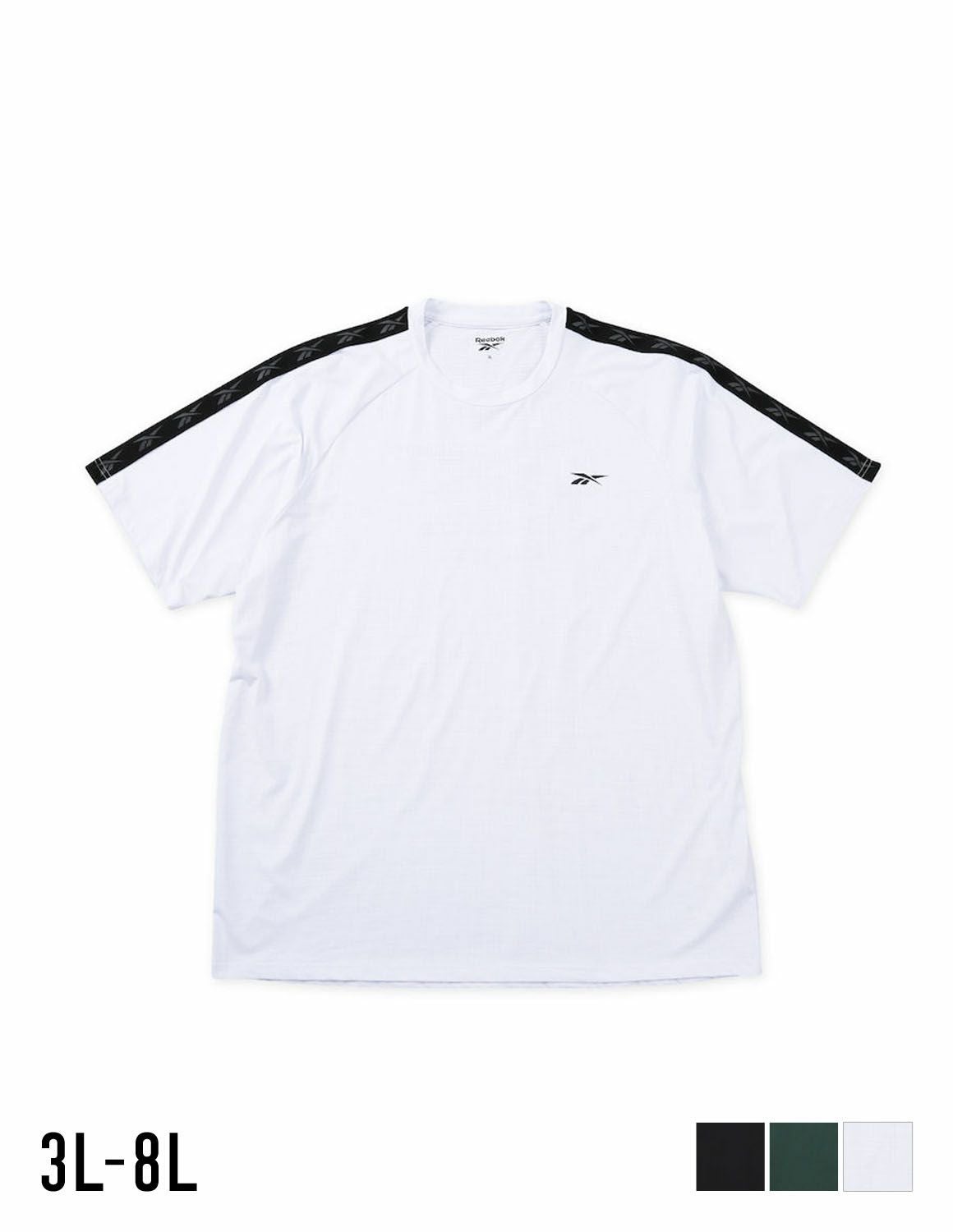 【大きいサイズ メンズ】Reebok(リーボック) DRY 吸水速乾 接触冷感 UVカット ストレッチ デオドラントテープ 穴開きメッシュ バックプリント 袖ラインテープ 半袖Tシャツ カットソー 3L/4L/5L/6L/8L