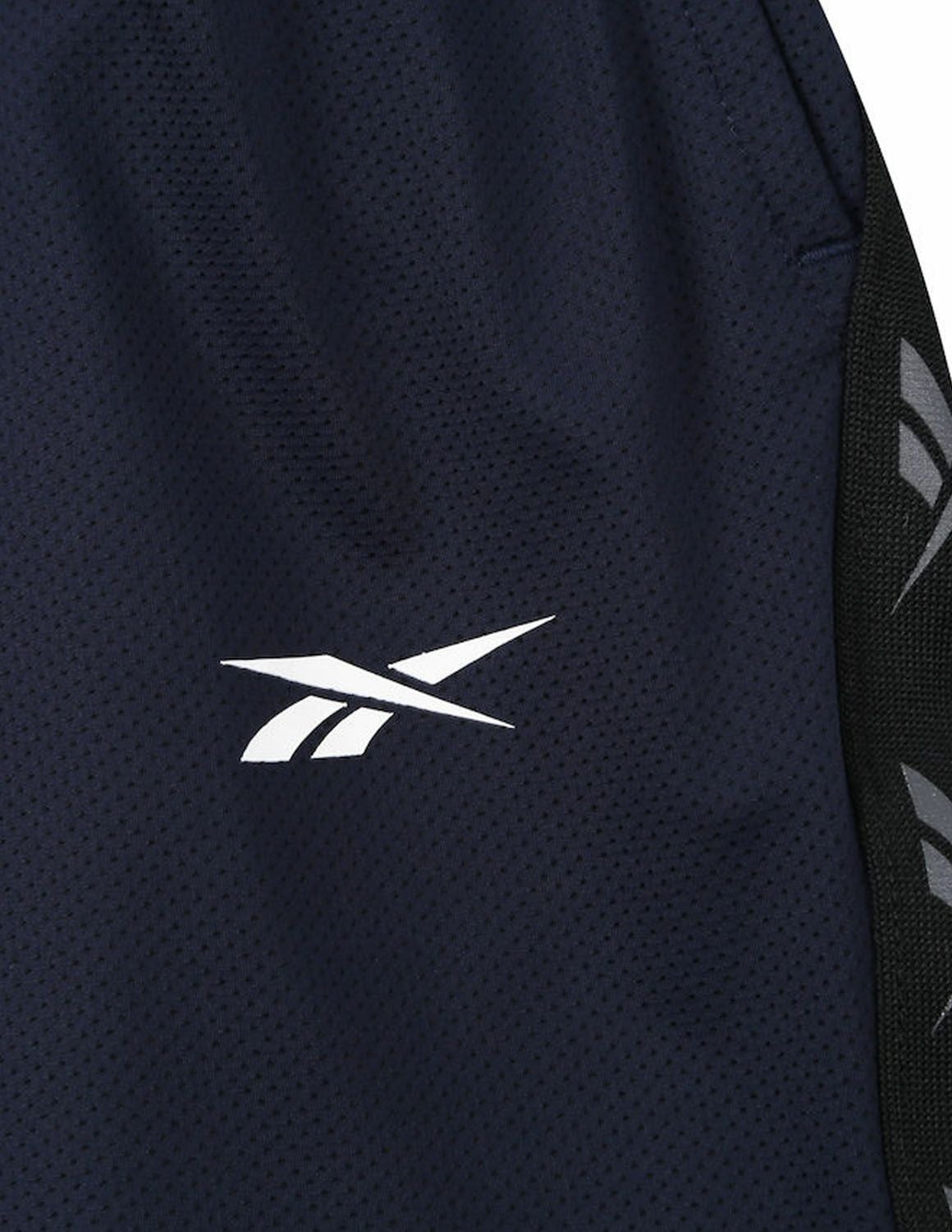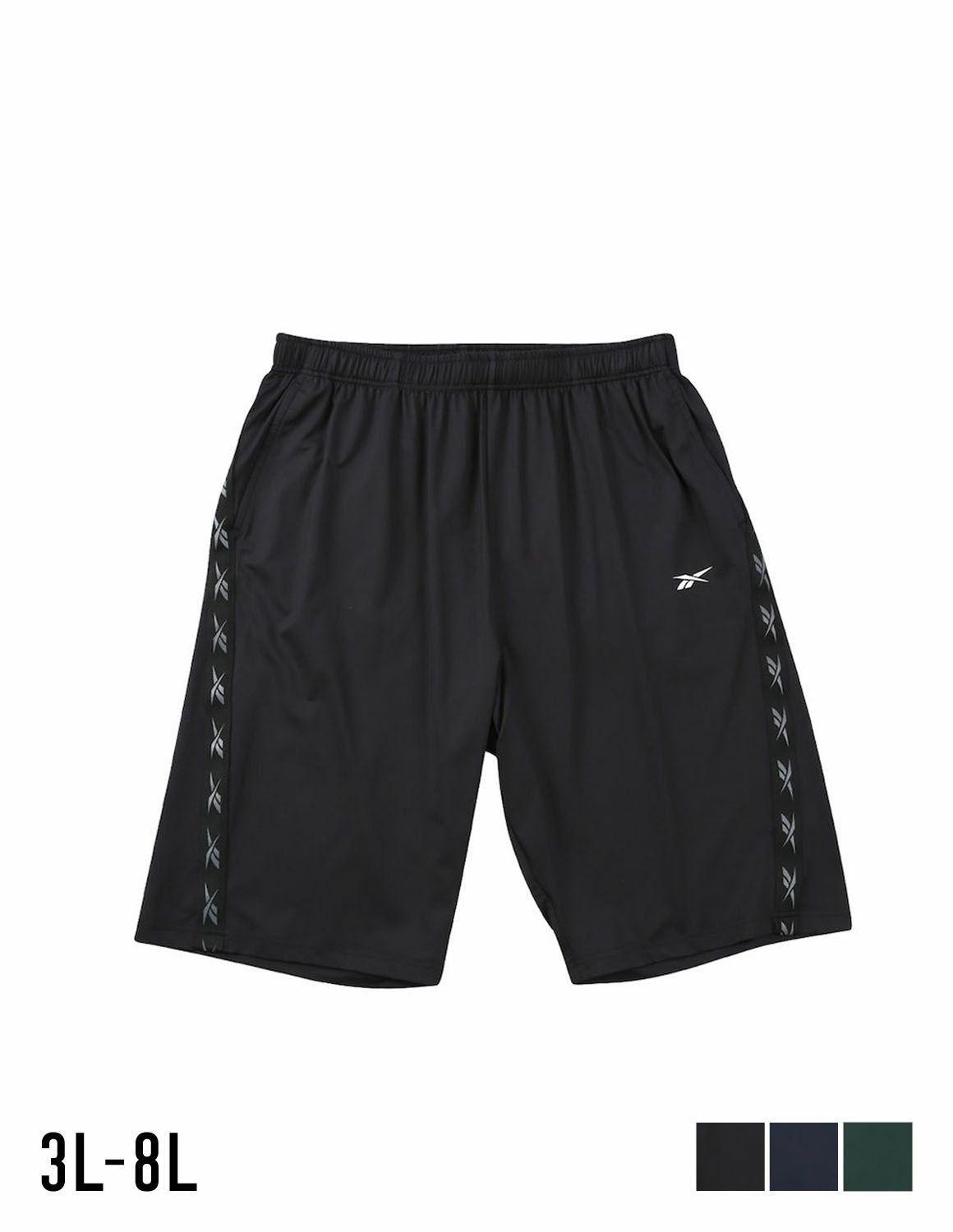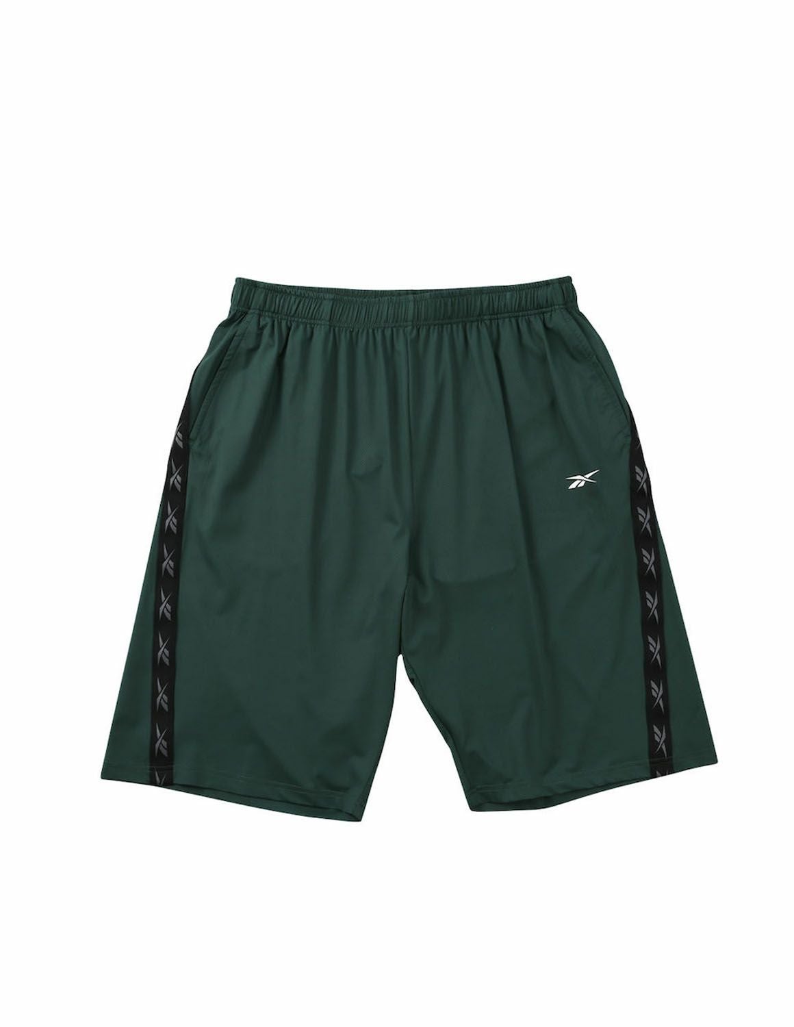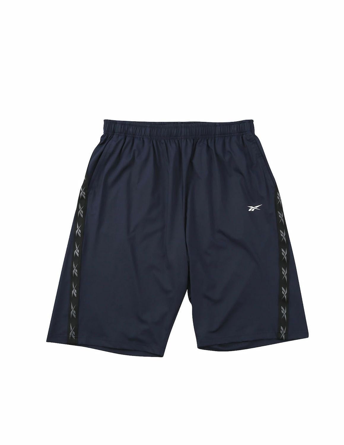 【大きいサイズ メンズ】Reebok(リーボック) DRY 吸水速乾 接触冷感 UVカット ストレッチ デオドラントテープ 前閉じ 穴開きメッシュ ラインテープ ショート ハーフパンツ 3L/4L/5L/6L/8L