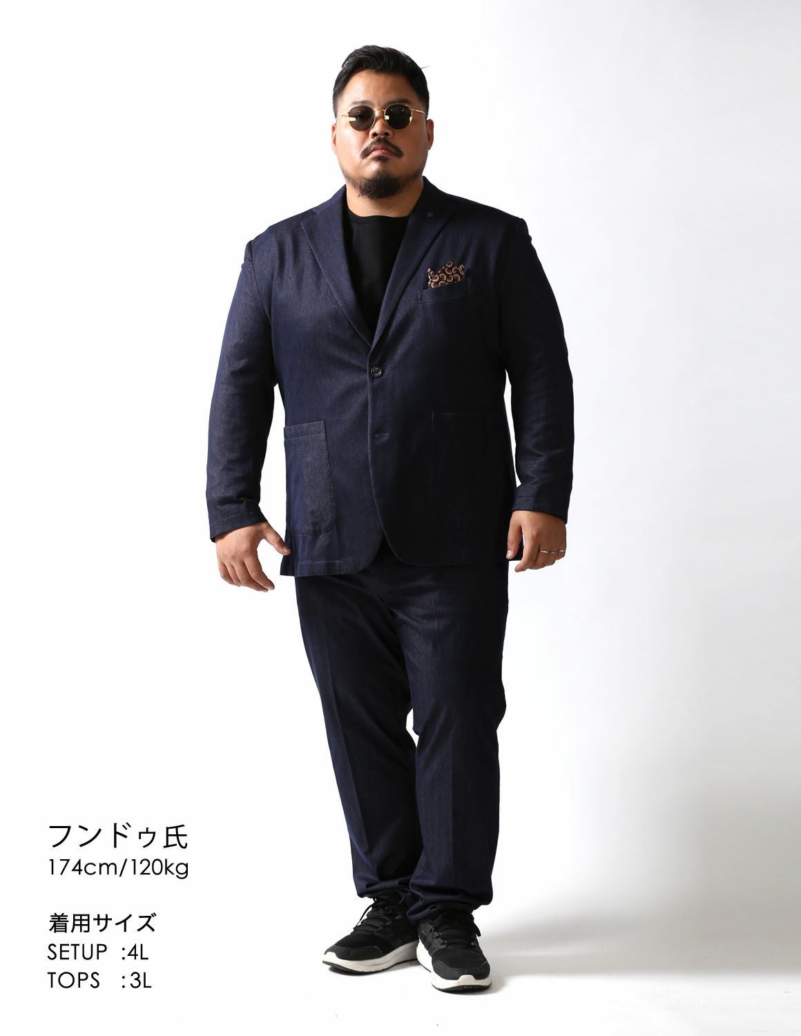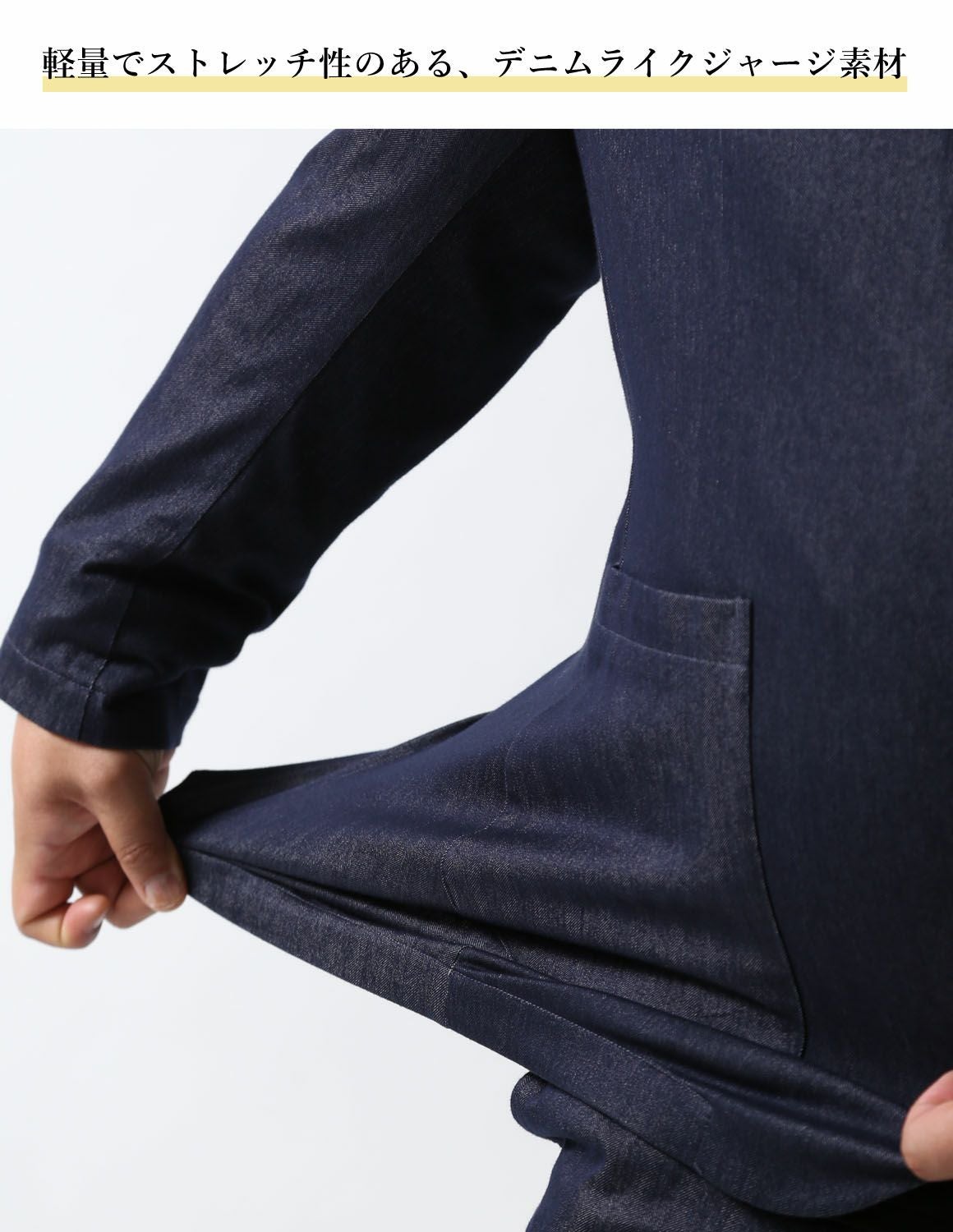 【大きいサイズ メンズ】G-stage(ジーステージ) デニムライク インレーカルゼ ジャケット ジャージ ストレッチ セットアップ カジュアルスーツ 3L/4L/5L