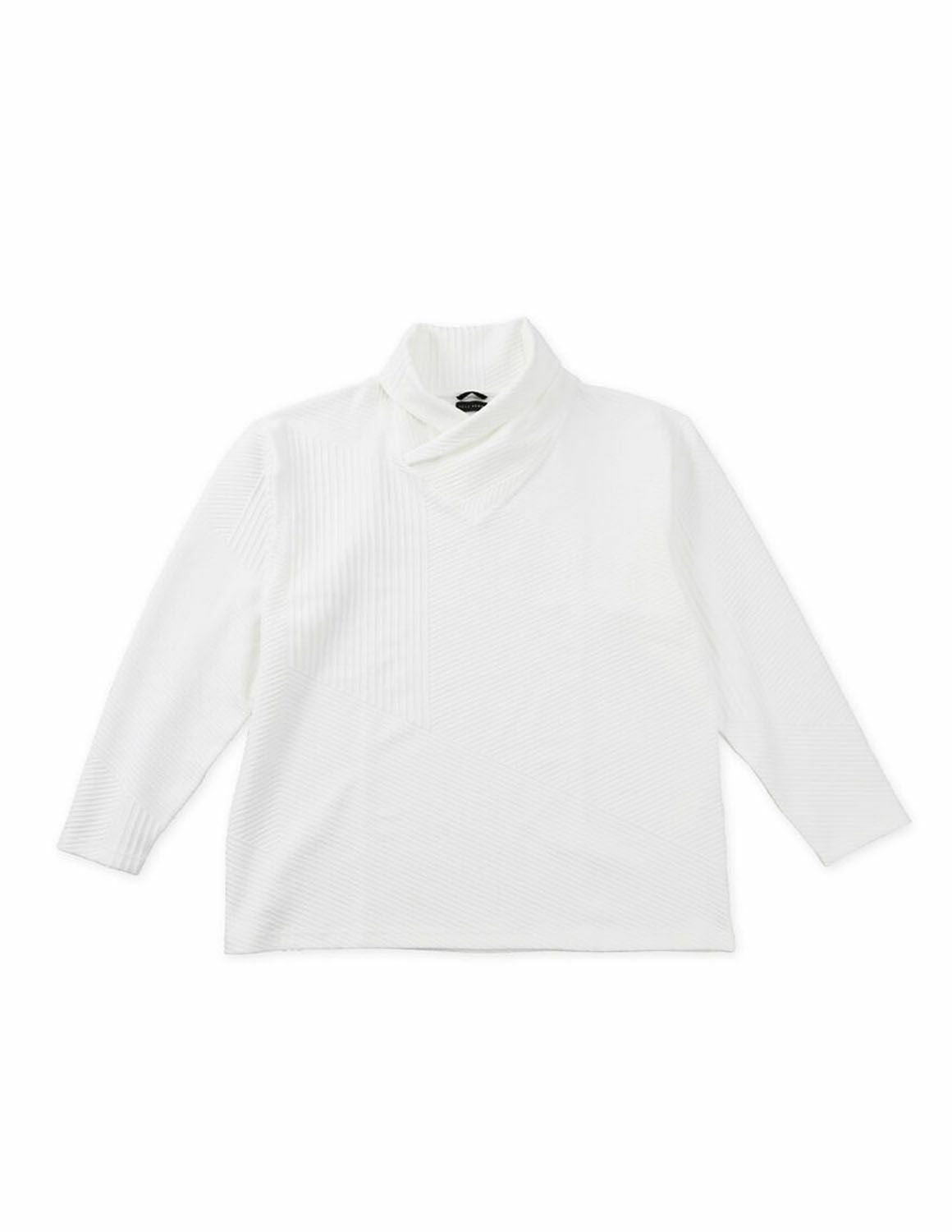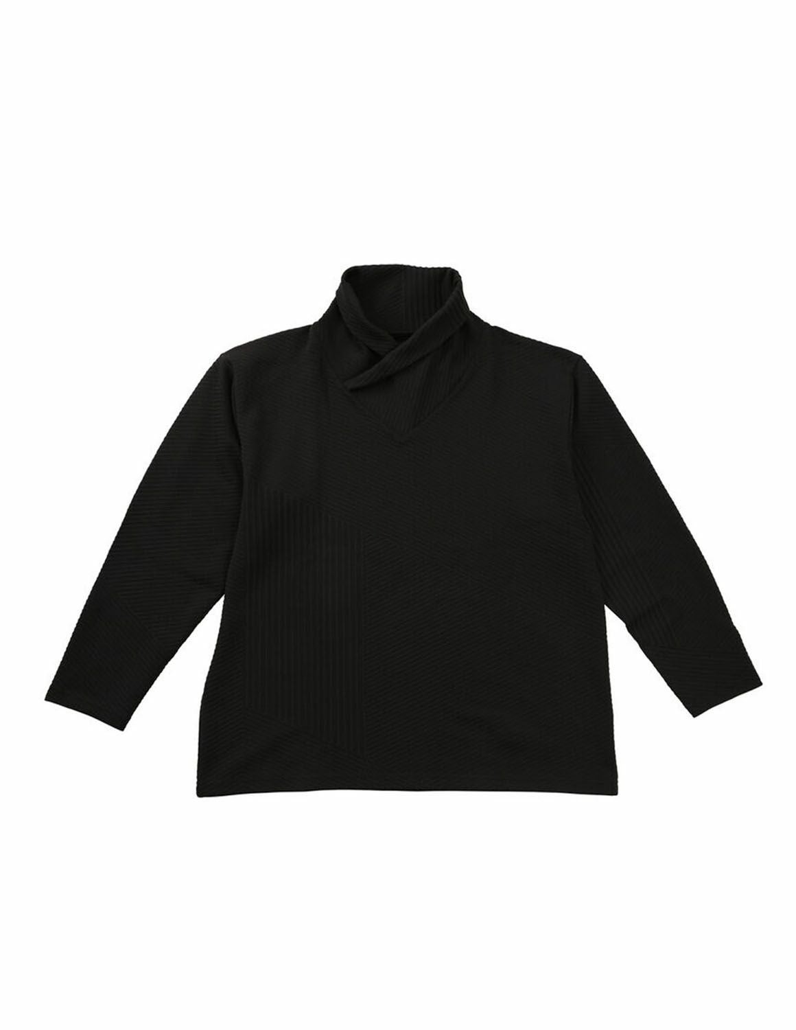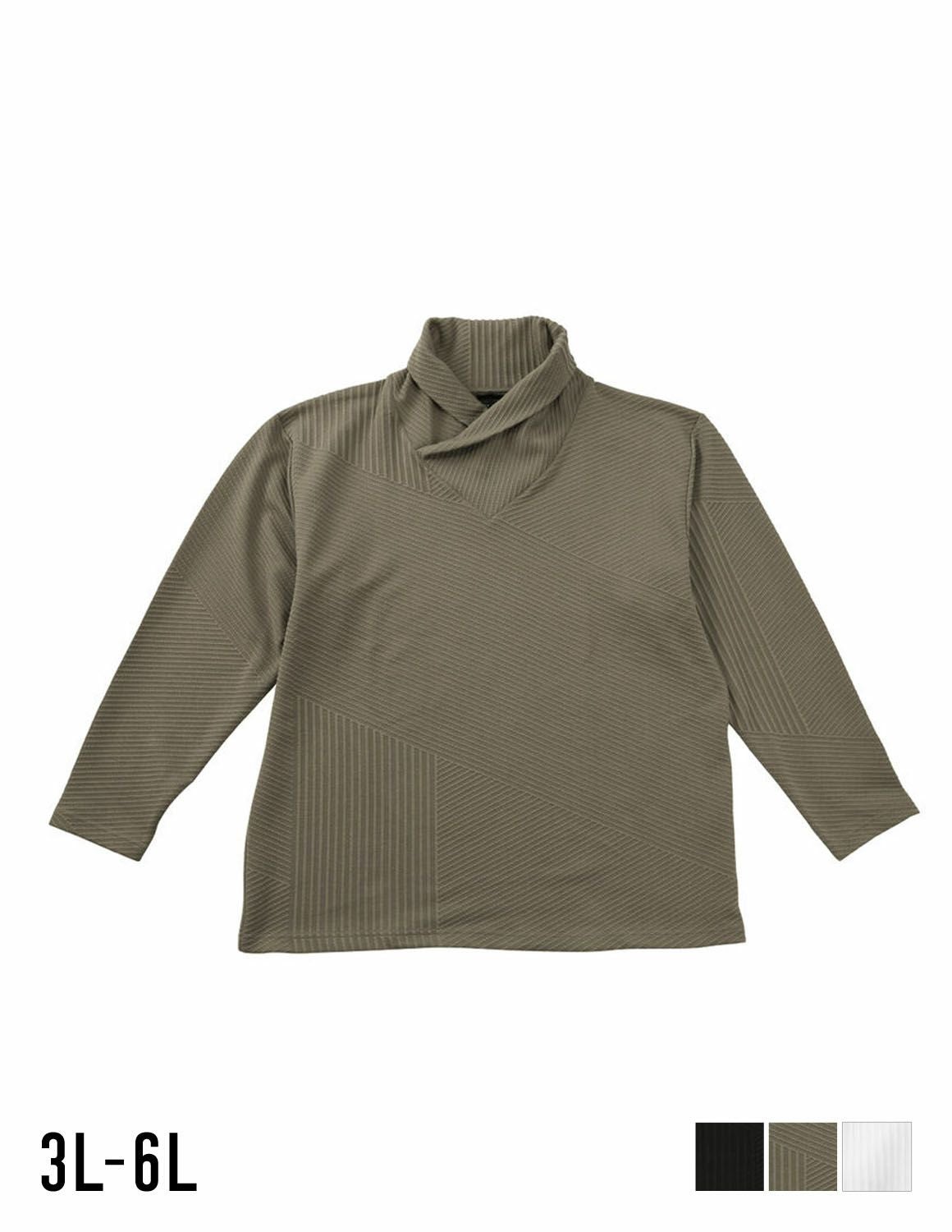 【大きいサイズ メンズ】TETE HOMME(テットオム) バイアスパネル柄 ボリュームネック ストレッチ 襟元ループ 長袖Tシャツ 3L/4L/5L/6L