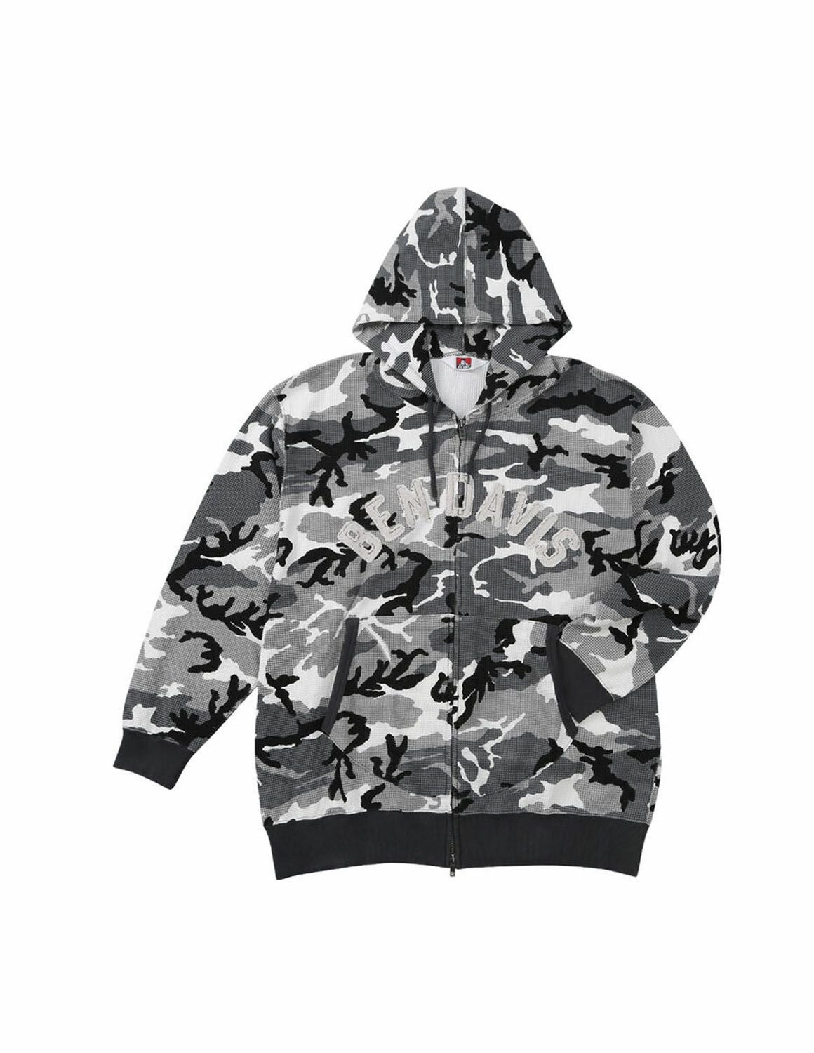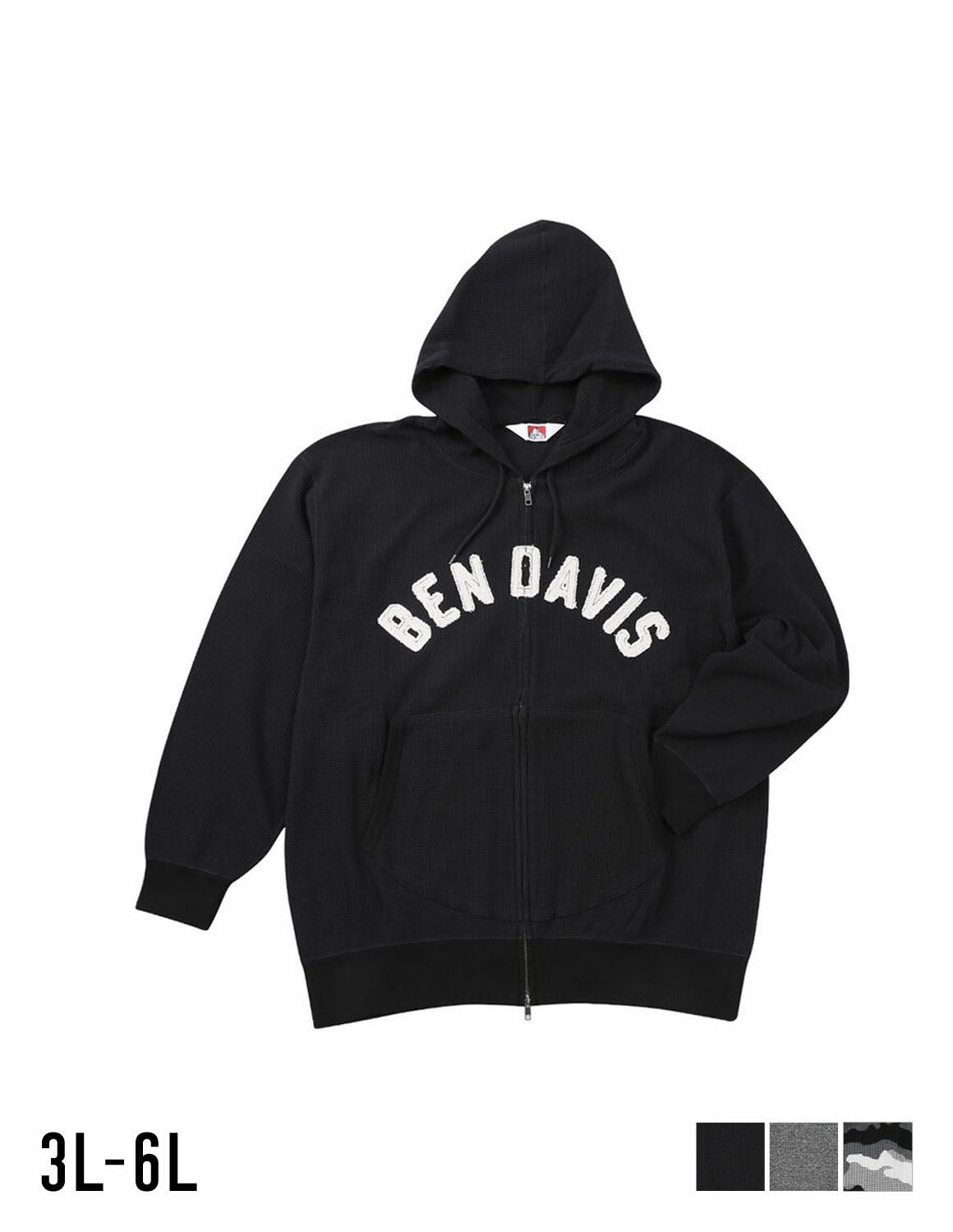 【大きいサイズ メンズ】BEN DAVIS(ベン デイビス) ワッフル ワッペン ストレッチ サイドポケット フード フルジップパーカー 3L/4L/5L/6L