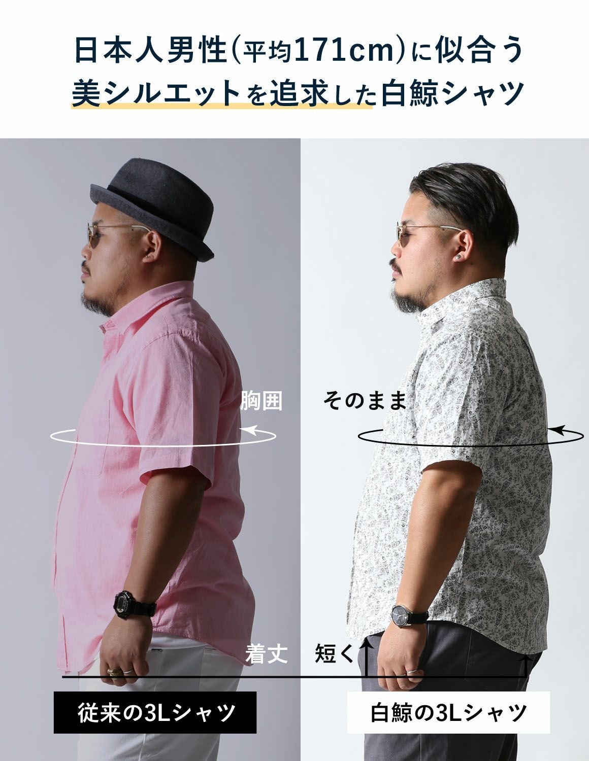他の画像を見る [再入荷!] 【大きいサイズ メンズ】白鯨 半袖シャツ classic 日本人男性(平均171cm)のための 感激丈 カジュアルシャツ 2L/3L/4L/5L/ 春 夏 秋 平日 即出荷 ¥ 10,978 税込 カートに入れる お気に入りに登録する